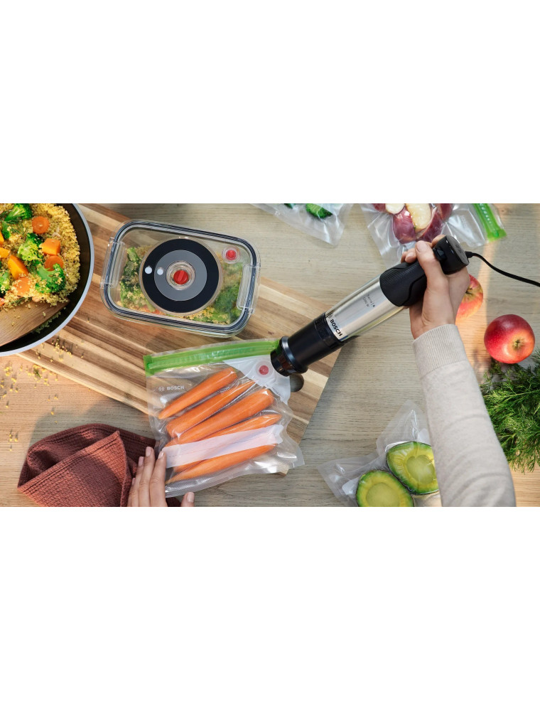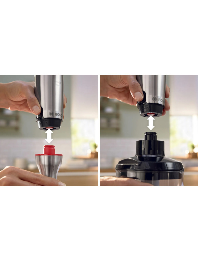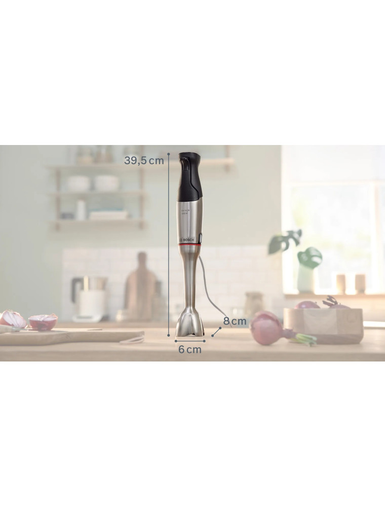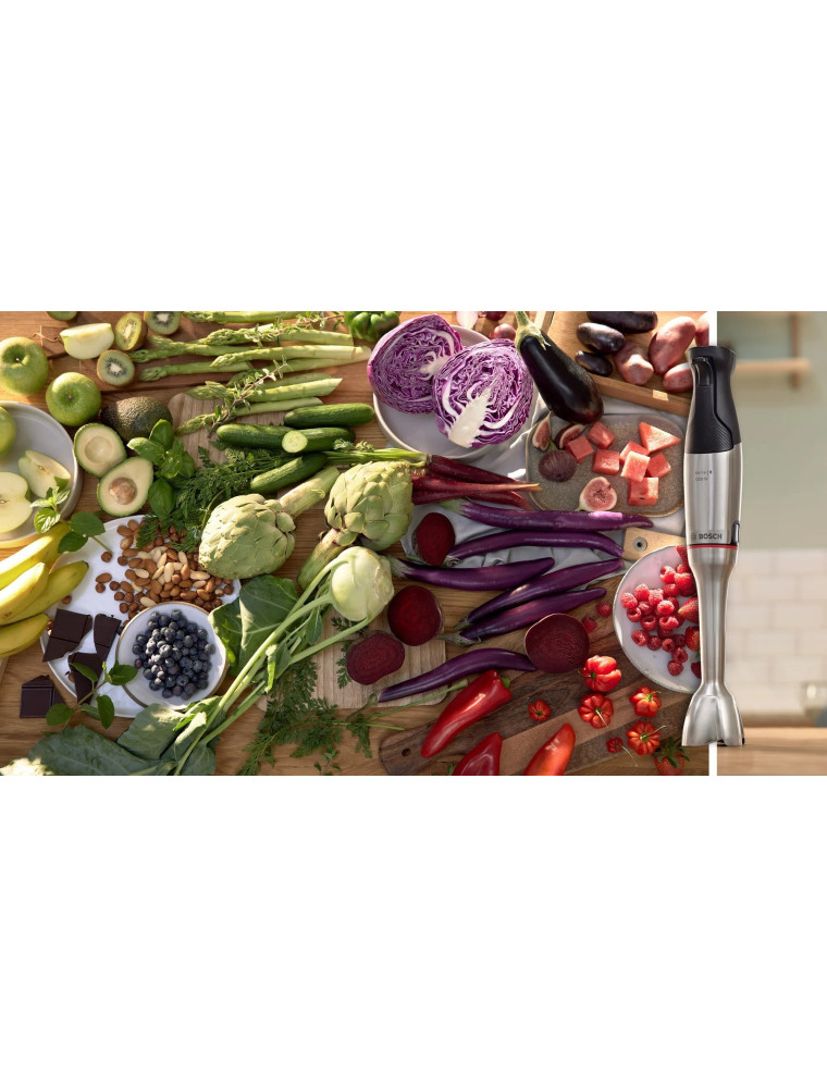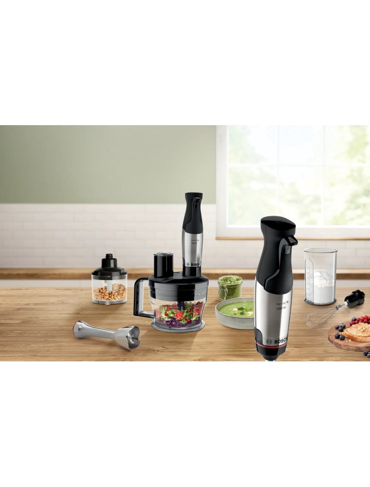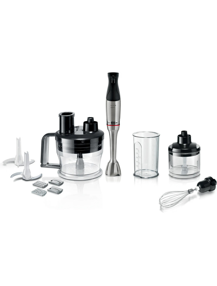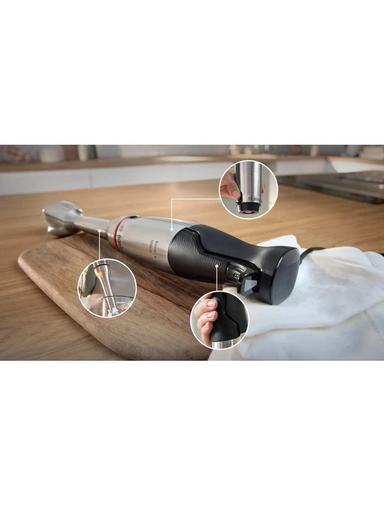 Блендер из серии Bosch ErgoMaster представляет собой многофункциональное устройство, способное выполнять большое количество кулинарных задач: нарезку, измельчение, взбивание и т. д. Все это благодаря богатой комплектации, которая расширяет возможности прибора. В первую очередь в нее входят сразу три емкости для обработки продуктов: основная чаша объемом 1.25 л, компактная чаша для измельчения, рассчитанная на 500 мл, и мерный стакан на 600 мл.