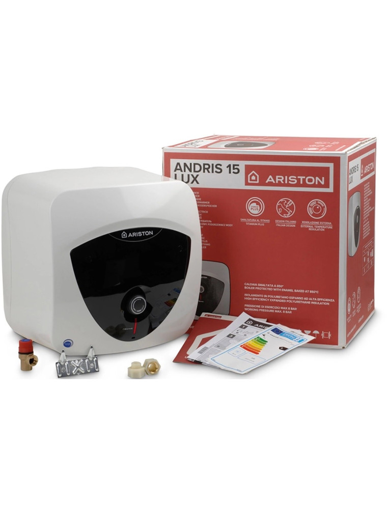 Компактный накопительный водонагреватель со встроенным баком всего на 6 л, позиционируемый производителем в доступный ценовой сегмент. Компактный энергосберегающий корпус почти кубической формы является надежным заслоном для рассеяния тепла и гармонично смотрится в интерьере ванной комнаты, кухни, кабинета или санузла. Бойлер Hotpoint-Ariston ANDRIS LUX 6 OR устанавливается на стене выводами для подсоединения труб разводки вниз и занимает совсем немного полезного пространства.