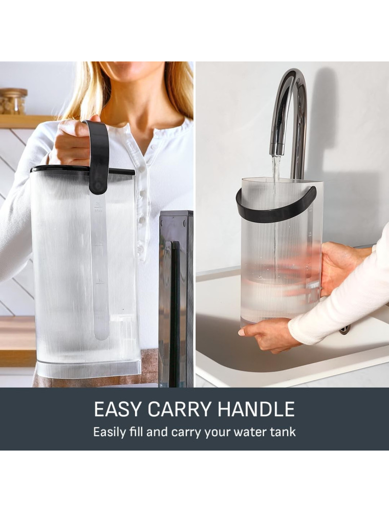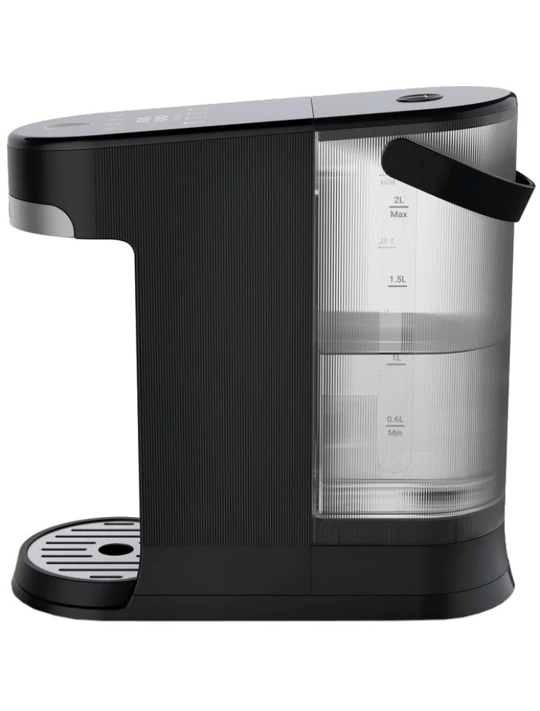 Стационарный диспенсер горячей воды, предлагающий альтернативный подход к нагреву жидкости по сравнению с привычными электрочайниками. Его главная техническая особенность заключается в порционной подаче: система позволяет выбрать одну из семи настроек объема, наливая ровно столько жидкости, сколько нужно для наполнения конкретной чашки. Прибор оснащен вместительным пластиковым резервуаром на 2 литра с наглядным внешним индикатором уровня и скрытым нагревательным элементом мощностью 2000 Вт для быстрого проточного нагрева.