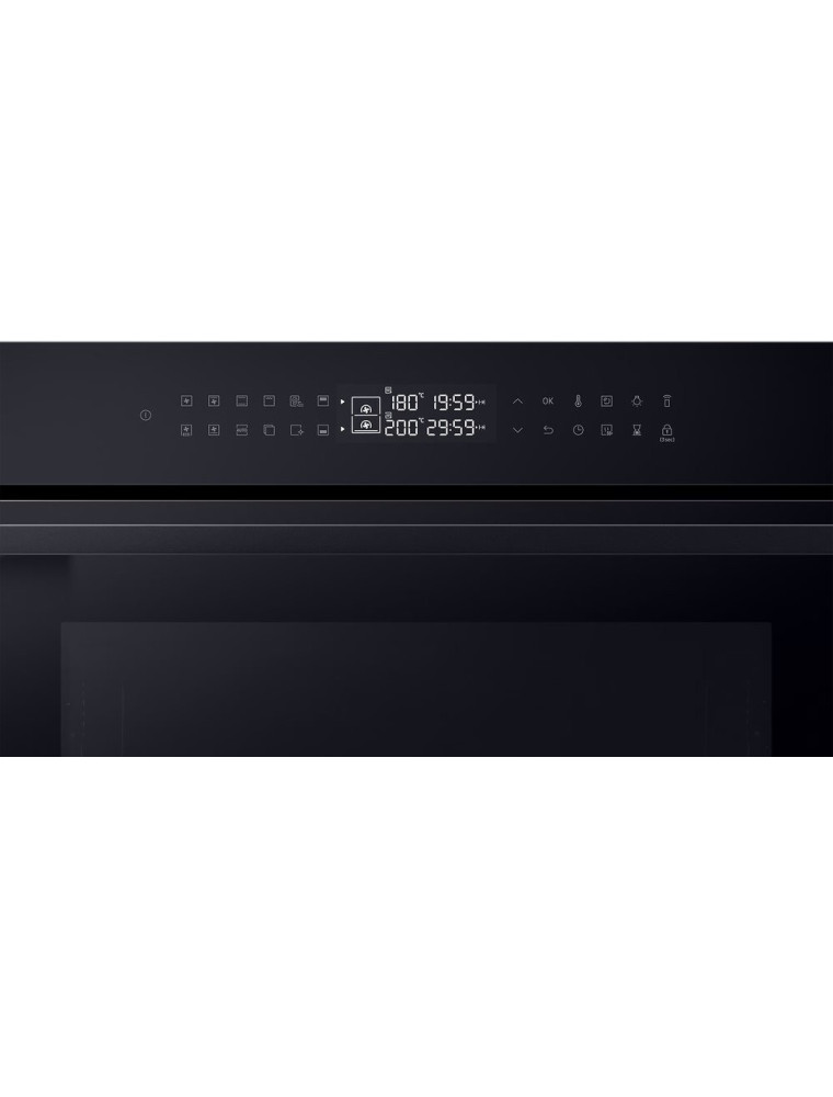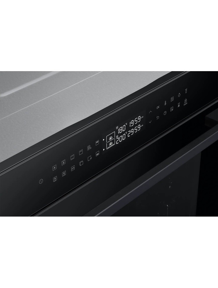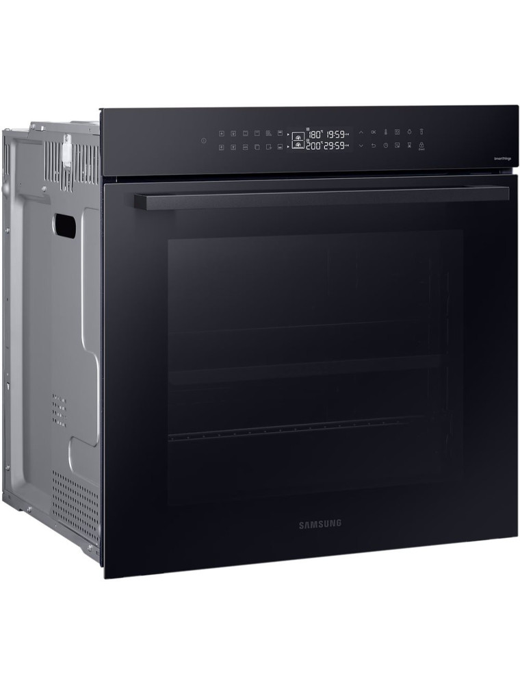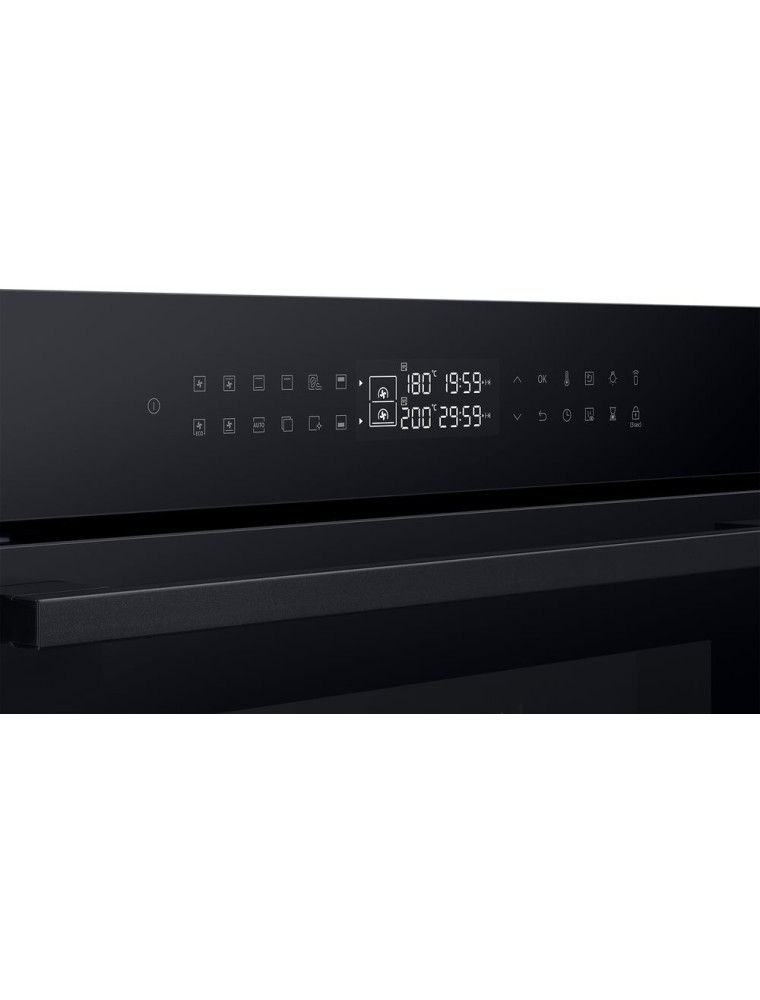 Духовой шкаф производства Samsung — это среднебюджетный прибор, который представляет фирменную линейку Dual Cook. Благодаря двум конвекционным вентиляторам и специальному разделителю здесь можно превратить одну рабочую камеру в две, чтобы одновременно готовить два разных блюда или задействовать только одну половинку духовки — для снижения энергопотребления (по умолчанию класс энергоэффективности удостоен оценки A+).