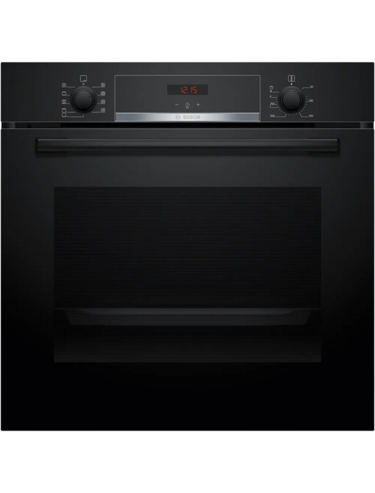 Черный духовой шкаф производства Bosch в 2025 году пополнил фирменную линейку Serie 4 и относится к решениям средней ценовой категории. Модель при стандартных размерах для встраивания (600xx560x550 мм) получила 71-литровую рабочую камеру, а производитель заявляет возможность одновременного приготовления на трех ее уровнях (на одном предусмотрены практичные телескопические направляющие).