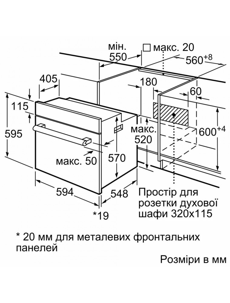 | Размеры для встраивания (ВхШхГ) | 600x560x550 мм |