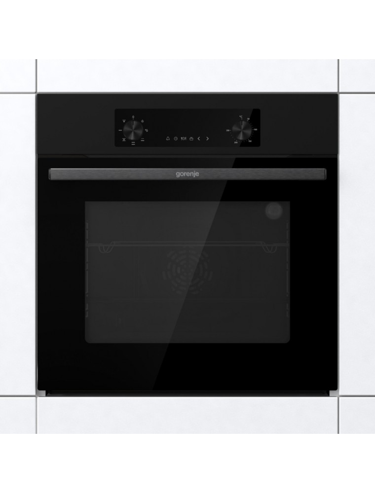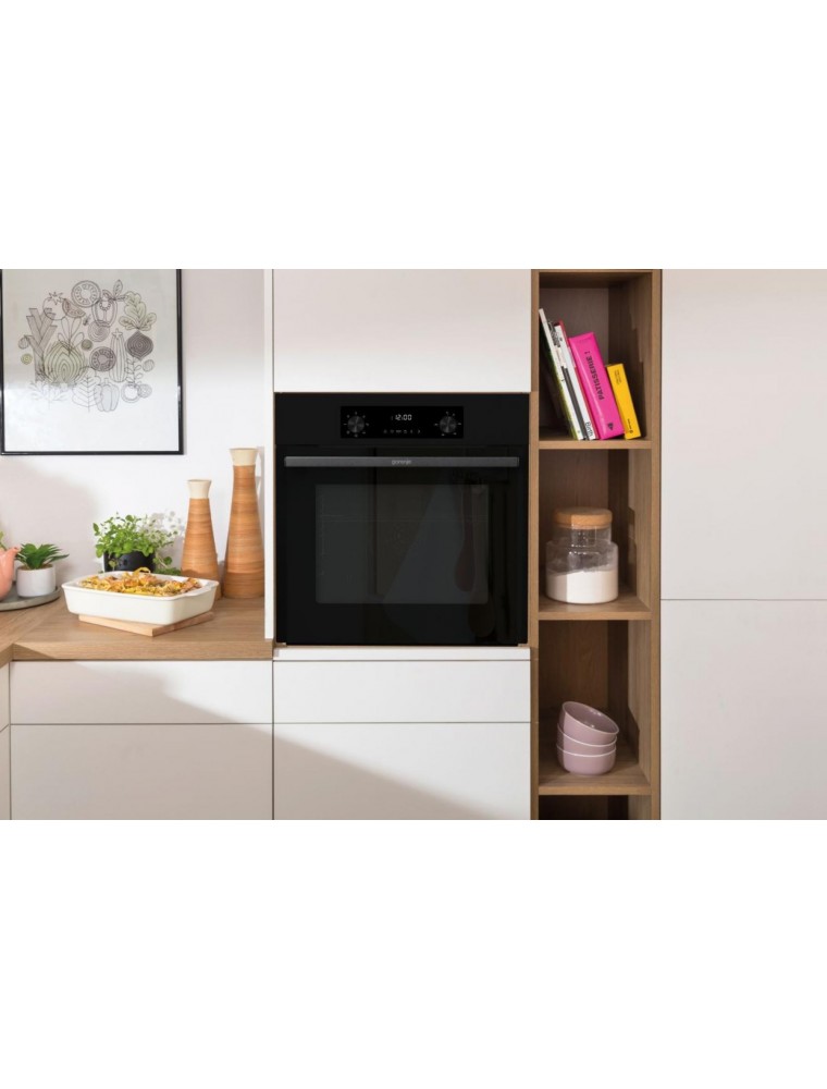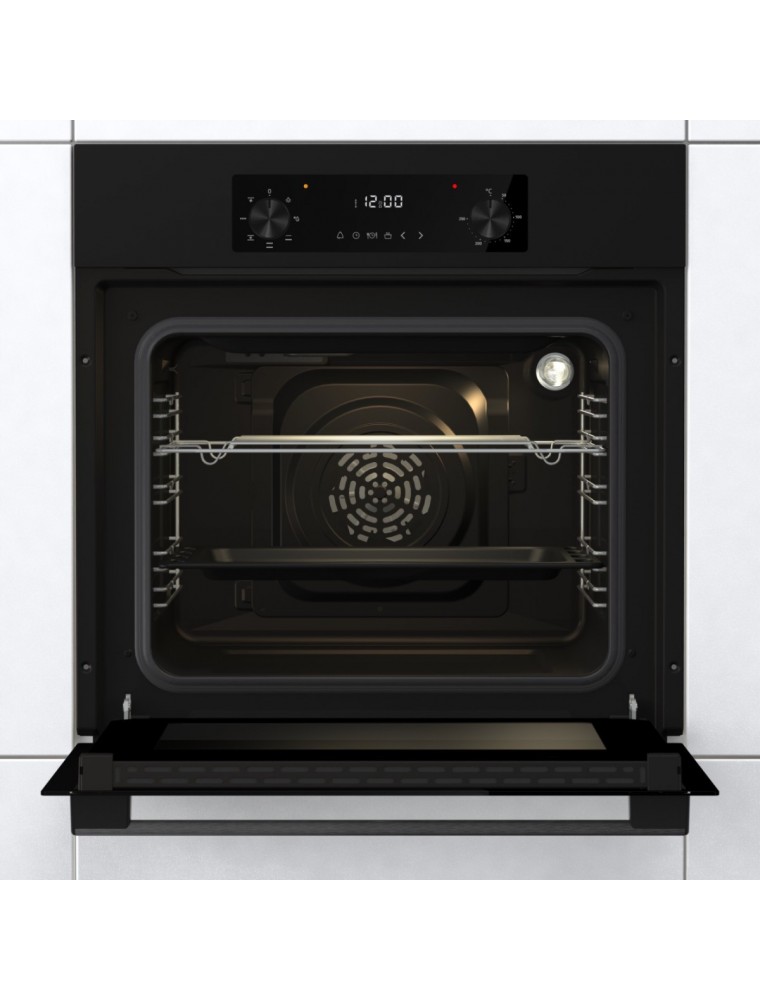 Дебютант 2025 года в линейке торговой марки Gorenje — это относительно недорогой электрический духовой шкаф с 62-литровой рабочей камерой и черным оформлением фронта. Прибор предусматривает 4 уровня загрузки с традиционными решетчатыми направляющими и возможностью одновременного приготовления на нескольких уровнях. Модель оснастили конвекционным нагревателем с вентилятором, грилем и традиционными нагревательными элементами.