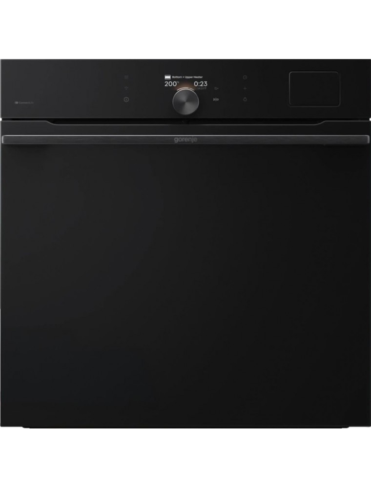 Дебютант 2025 года в линейке бренда Gorenje — это вместительный (полезный объем 77 литров) духовой шкаф, который можно отнести к решениям продвинутого класса. Модель поддерживает два способа управления: помимо сенсорного цветного TFT-дисплея VisionPlus с поворотным переключателем поддерживается и удаленный доступ через интернет — с помощью мобильного приложения ConnectLife. Прибор предусматривает встроенную пароварку — отдельный резервуар на 1.4 литра воды и несколько режимов приготовления на пару, включая SteamAssistPro с возможностью регулировки степени увлажнения.