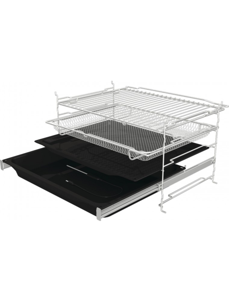 Духовой шкаф Gorenje BSA 6138 B комплектуется не только телескопическими направляющими (для одного уровня), но и термощупом MeatProbe. Последний позволит автоматизировать процедуру контроля степени готовности мясных блюд за счет измерения температуры внутри мякоти. В целом пользователям предлагается хороший набор режимов, включая пиццу, аэрогриль и даже несколько дополнительных циклов, например, для стерилизации, сушки, парового разогрева и т.д. Еще доступен обширный ассортимент автопрограмм AutoBake для готовки с вашим минимальным участием, а также возможность сохранения своих настроек в Избранном. Отдельно выделим эффективную пиролитическую очистку духовки, тройное остекление дверцы и энергопотребление класса A+.