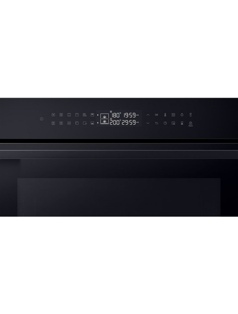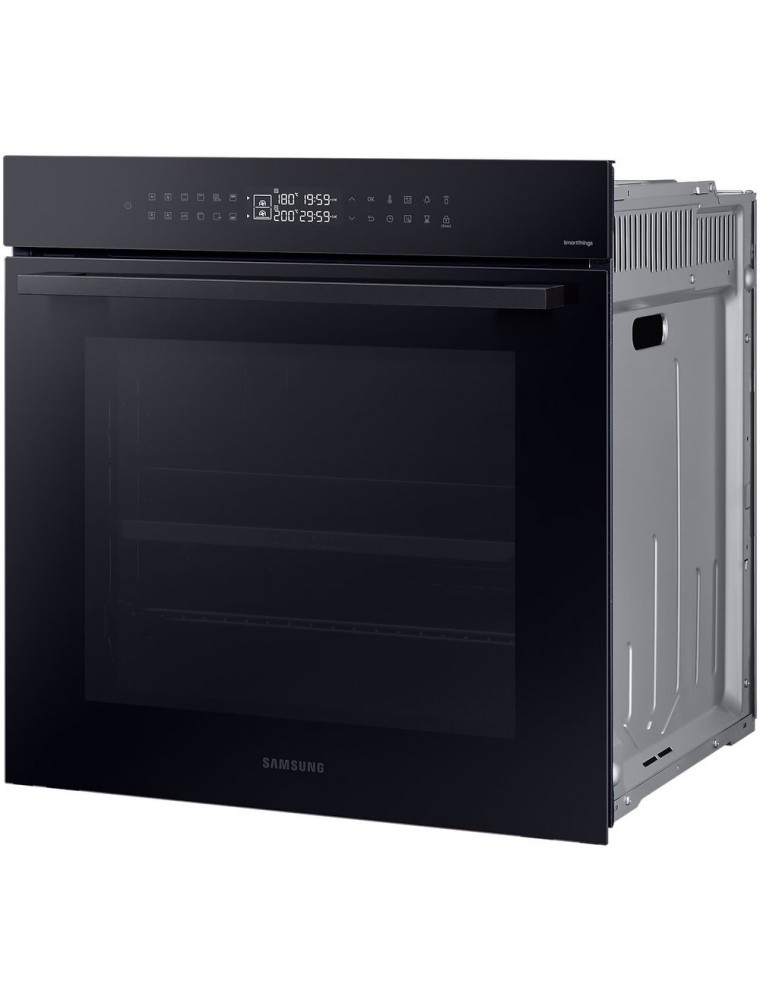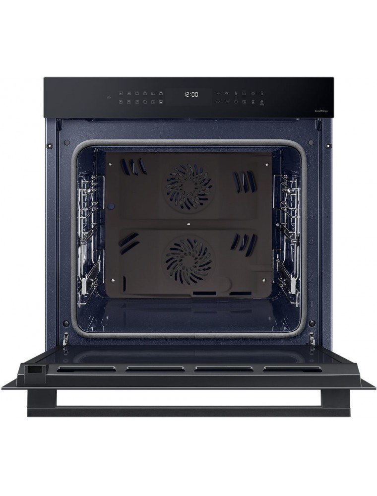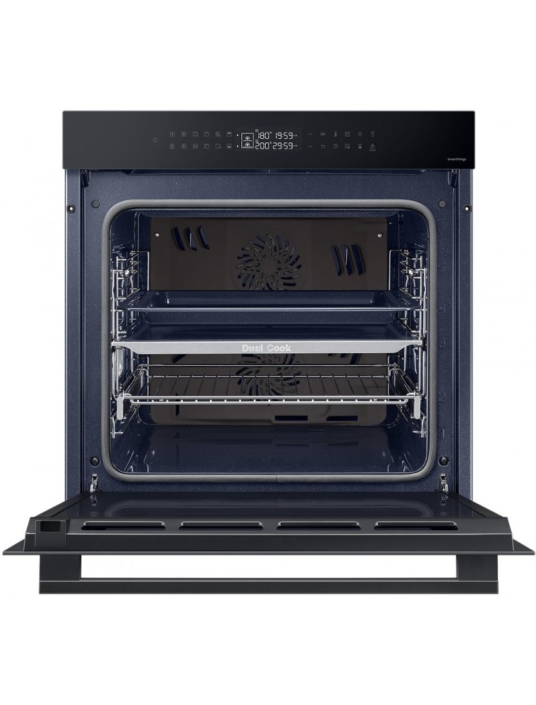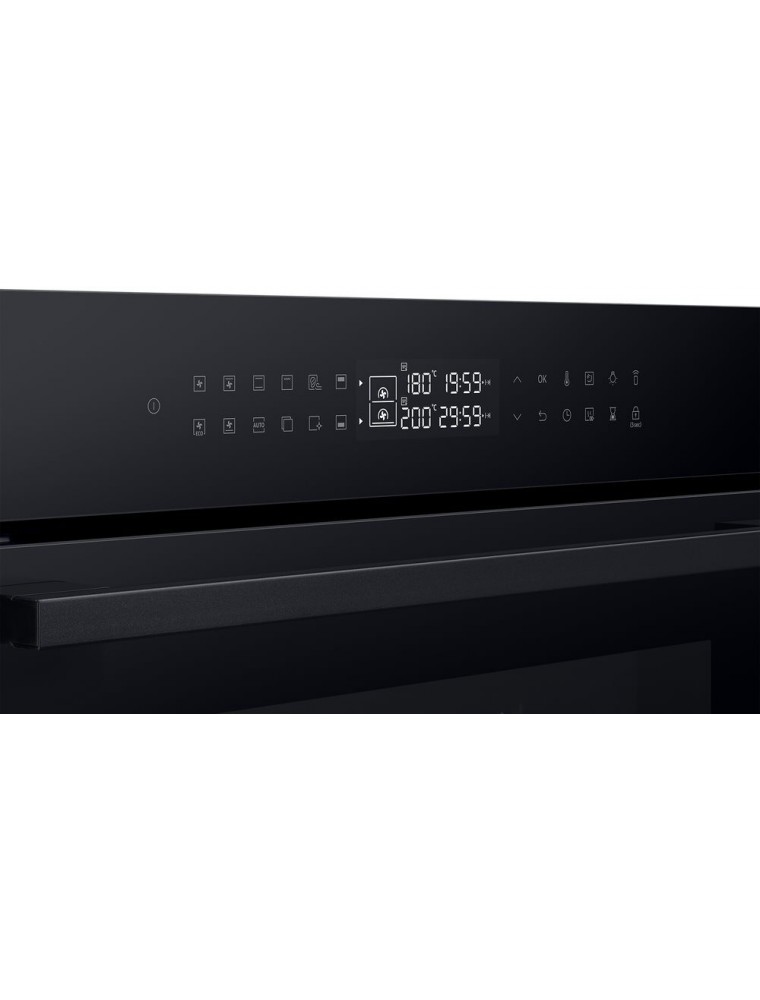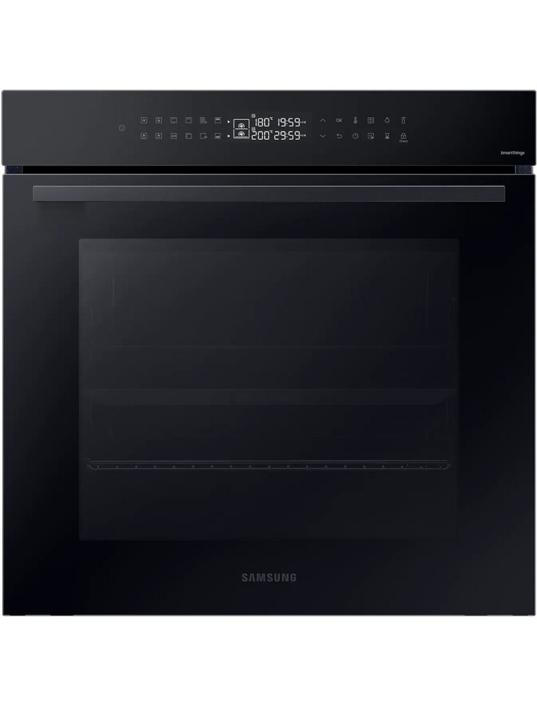 Духовой шкаф производства Samsung — это среднебюджетный прибор, который представляет фирменную линейку Dual Cook. Благодаря двум конвекционным вентиляторам и специальному разделителю здесь можно превратить одну рабочую камеру в две, чтобы одновременно готовить два разных блюда или задействовать только одну половинку духовки — для снижения энергопотребления (по умолчанию класс энергоэффективности удостоен оценки A+).