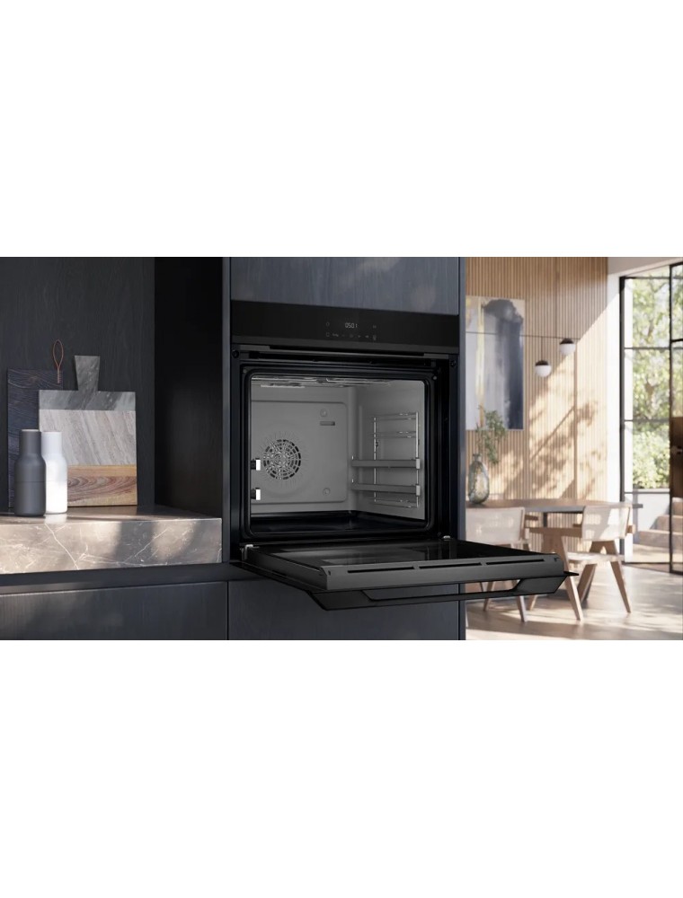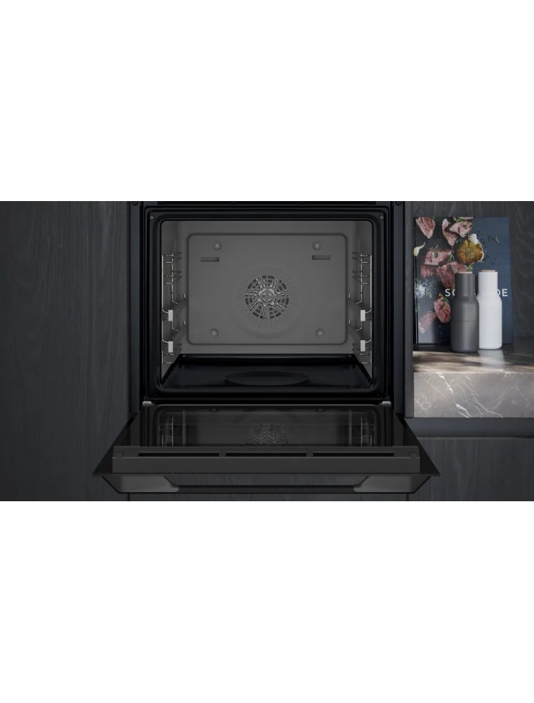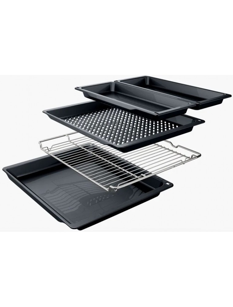 Также духовой шкаф Siemens HJ 852GYB0T имеет автодоводчик дверцы softMove и сенсорную панель управления — без привычных поворотных переключателей. Пользователям предложены 8 режимов приготовления, причем это не только разные комбинации нагревателей (гриля, конвекции и т.д.), но и несколько востребованных профильных циклов, включая пиццу и Air Fry. Последний представляет собой аэрогриль с возможностью готовить хрустящую пищу, например, картофель фри, с минимальным количеством масла. Отдельно стоит выделить быстрый разогрев и наличие 30 автоматических программ cookControl30, для которых не нужно задавать дополнительные настройки. Это упростит приготовление таких популярных блюд, как лазанья, овощное рагу, голубцы, ростбиф и т.д. Из других особенностей прибора отметим достойный диапазон рабочих температур (30 – 275 °C) и энергопотребление класса A.
