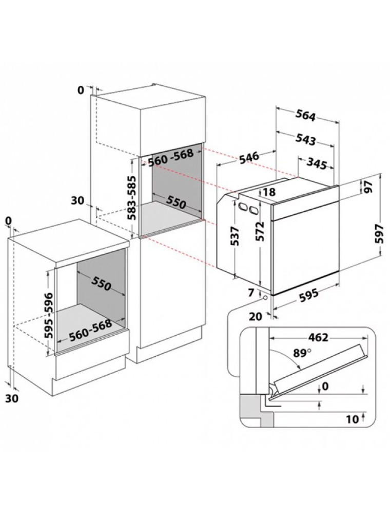 | Размеры для встраивания (ВхШхГ) | 595x560x550 мм |
