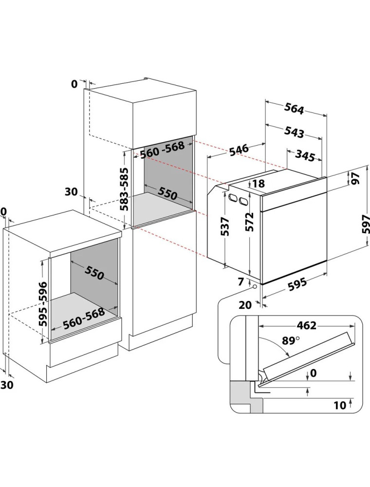 | Размеры для встраивания (ВхШхГ) | 595x560x550 мм |