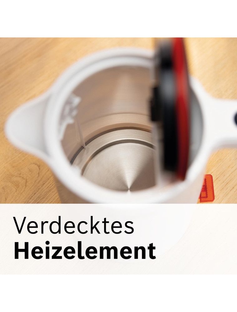 Надежный и практичный электрочайник от немецкой фирмы Bosch. Улучшенный ТЭН мощностью 2400 Вт позволяет заметно ускорить нагрев жидкости. Высококачественная пластиковая колба позаботится, чтобы вода сохранила свой естественный вкус и аромат. Крышка открывается максимально широко, давая возможность упростить чистку колбы. В корпус интегрировано обзорное окошко с мерной шкалой. Разметка объема дополнена измерителем количества порций горячего напитка.
