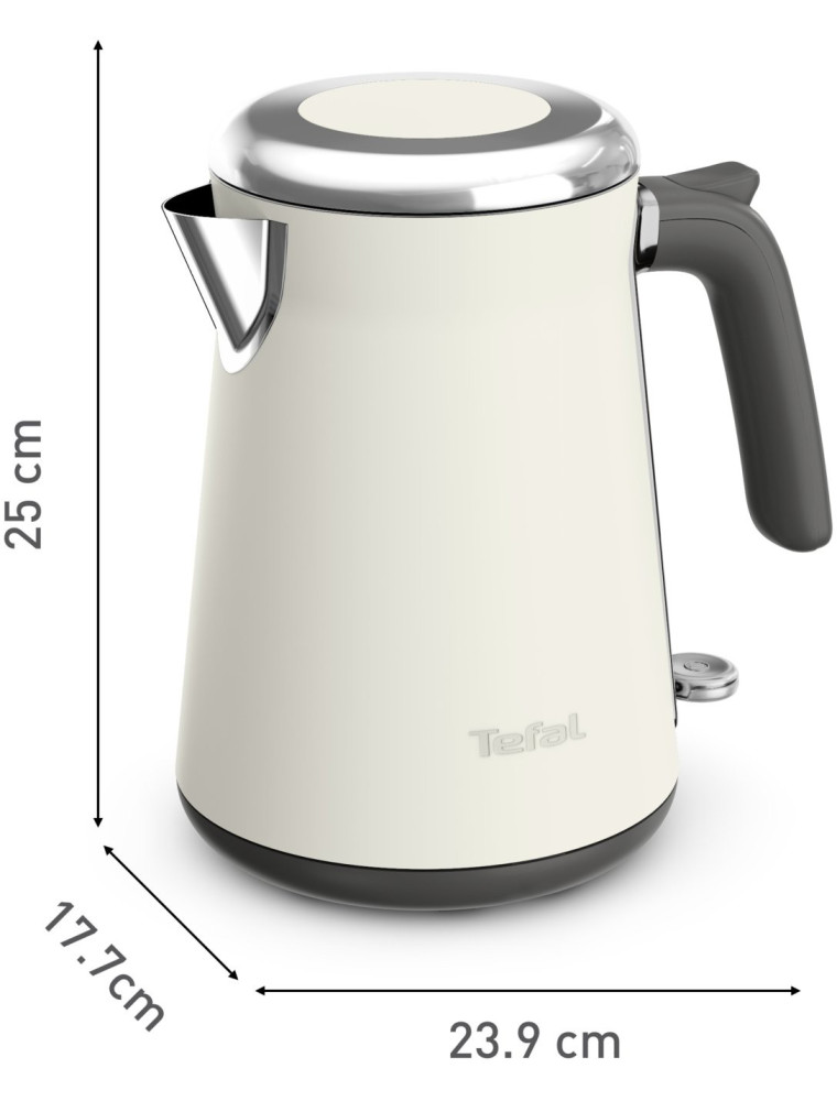Нагревательный элемент скрыт под плоским дном, облегчая регулярный уход и очистку внутренней емкости от накипи. Инженеры разместили шкалу уровня воды в зоне за рукояткой: такое решение сохраняет визуальную целостность металлических боковин, хотя и требует от пользователя определенного ракурса для контроля наполненности. Механизм крышки активируется нажатием кнопки, расположенной в верхней части ручки, что дает возможность открывать прибор одной рукой, не касаясь нагретых частей корпуса. При габаритах 25x17.7x23.9 см модель требует стандартного места на кухонной столешнице для размещения.