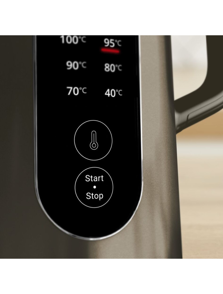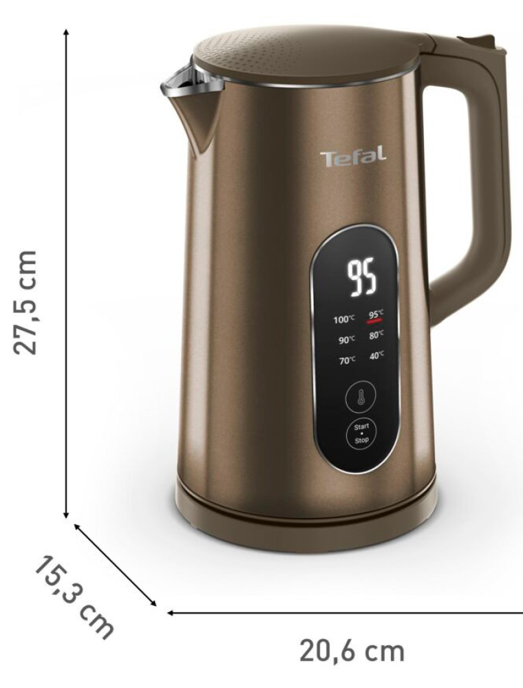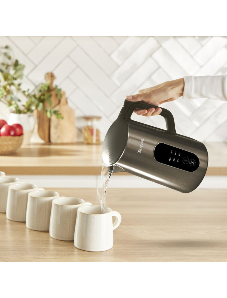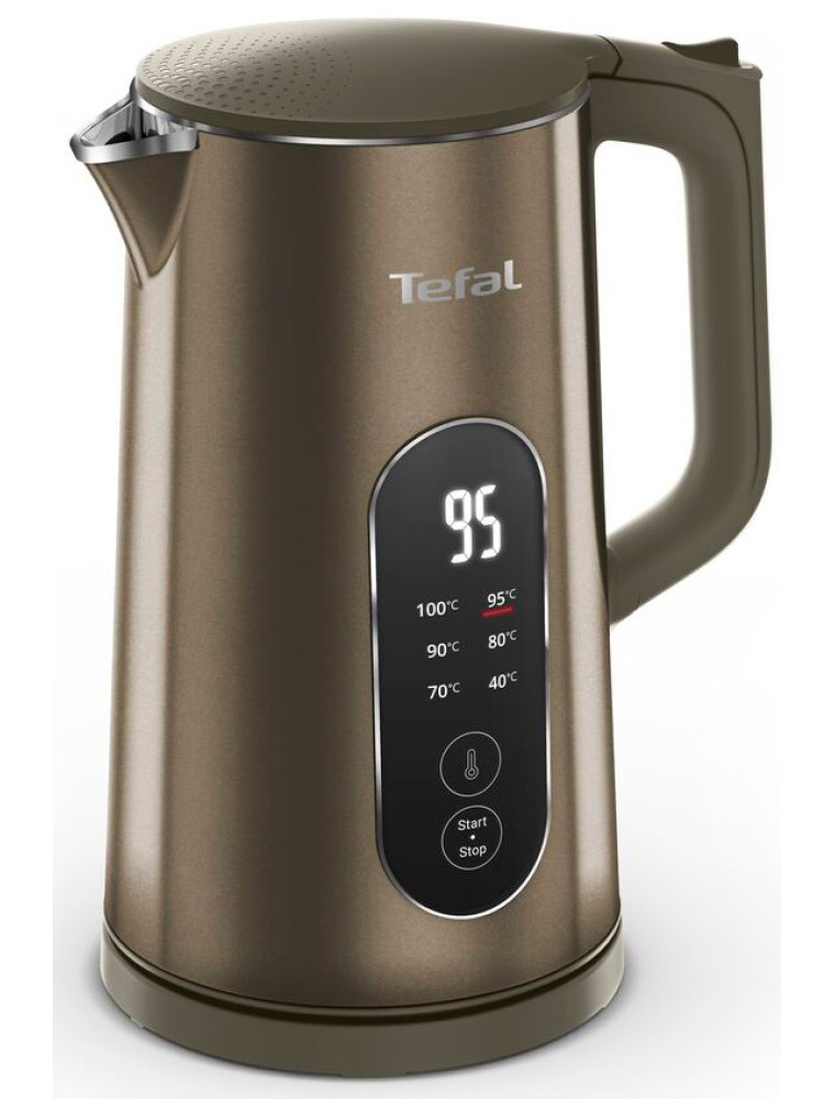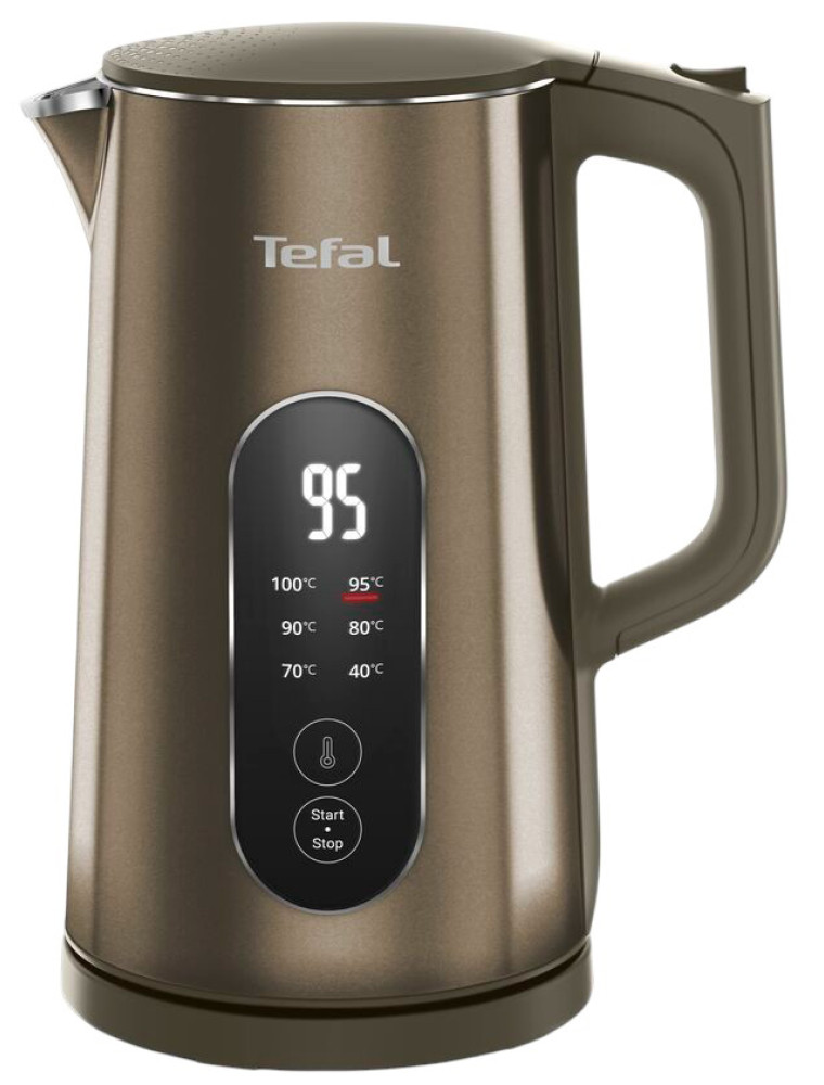 Устройство из линейки Selection французского бренда Tefal, представленное на рынке в 2025 году и сочетающее в себе развитые возможности температурного контроля с защитной конструкцией корпуса. В отличие от моделей с плавной регулировкой, терморегулятор предлагает шесть предустановленных температурных режимов — 40, 70, 80, 90, 95 и 100 °C, что упрощает выбор оптимальных параметров для конкретных задач: минимальный режим подходит для детского питания, средние диапазоны оптимальны для различных сортов чая с учетом их особенностей, а максимальные значения используются для полного кипячения.