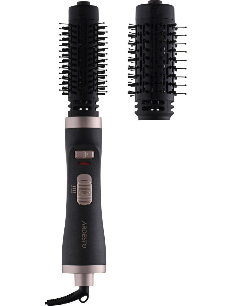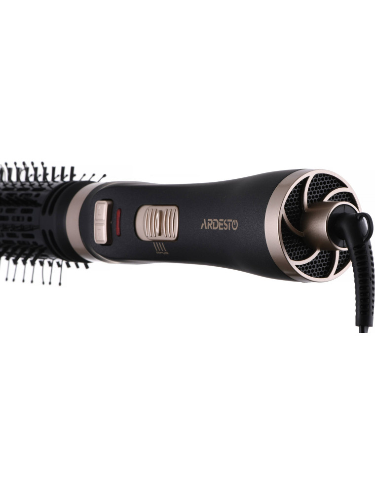 Бренд Ardesto представляет бюджетную модель фен-щетки, которая предназначена для сушки и укладки волос. Причем эти действия происходят одновременно, поэтому, в целом, процесс занимает гораздо меньше времени. Мощность устройства составляет 1000 Вт, а для работы с разными типами волос предусмотрено два режима, которые совмещают в себе настройки температуры и скорости воздушного потока.