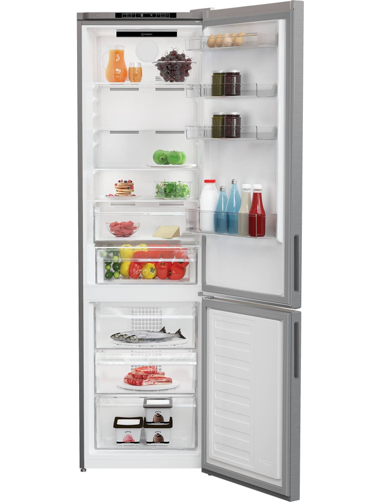 Дебютант 2025 года в линейке торговой марки Indesit — это двухкамерный холодильник, который можно отнести к среднебюджетным решениям рынка. Модель при высоте корпуса в 202 см и стандартной ширине (60 см) имеет суммарный полезный объем в 362 литра, чего, как правило, достаточно даже большим семьям. Холодильное отделение на 253 литра расположено сверху, имеет 4 открытых полки, сделанных из прочного закаленного стекла, а также два выдвижных бокса и 4 дверных корзины для мелких предметов.