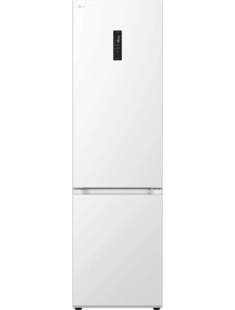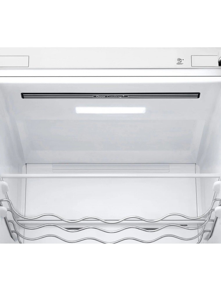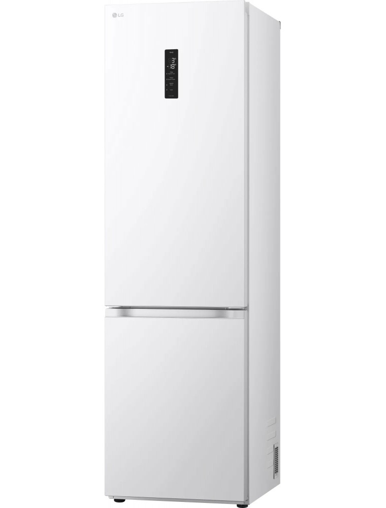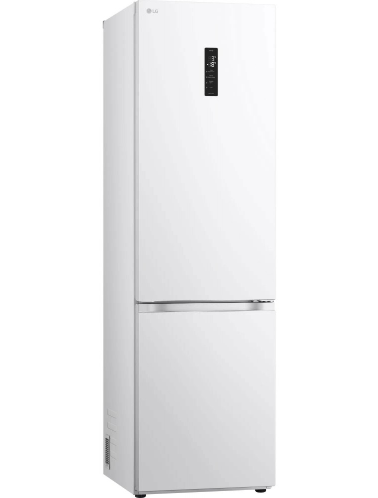 Дебютант 2025 года от бренда LG — это белый 2-камерный холодильник, который можно отнести к агрегатам средней ценовой категории. Среди основных фишек прибора выделяется система Total No Frost, благодаря которой от пользователей не требуется ручная разморозка, а также удобное управление. Во-первых, модель предусматривает внешнее сенсорное управление с дисплеем и функцией индикации открытой двери.