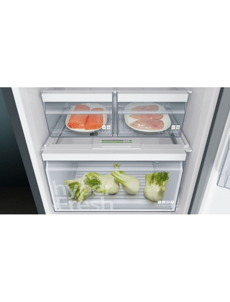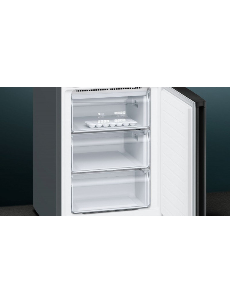 Холодильник Siemens KG39NXX316 позволяет охлаждать и замораживать свежие продукты в интенсивном режиме. Функции быстрой заморозки и быстрого охлаждения можно активировать нажатием соответствующих кнопок. В этом случае производительность холодильной системы значительно возрастет, что позволит сохранить холодными прежние продукты. Высокий уровень энергоэффективности хорошо сочетается с неплохой вместительностью. Доля полезного пространства холодильника достигает 366 л, это при условии, что расход электроэнергии соответствует классу А++. Для данной модели характерно потребление 273 кВт*ч ежегодно. Это экономичный агрегат с повышенной производительностью. Морозильное отделение легко справляется с подготовкой 14 кг продуктов в сутки.