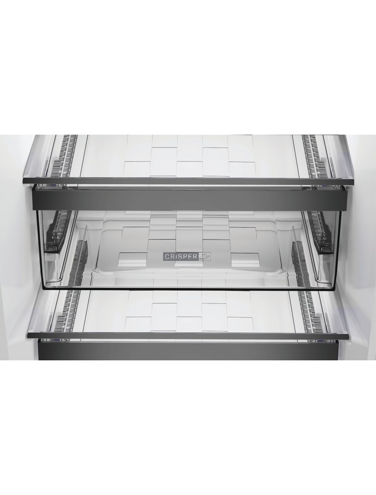 В них за сутки удастся заморозить до 6 кг продуктов, а период сохранения холода при отсутствии электричества составит 11 часов. В холодильном отделении на 210 литров имеются по три открытых отсека и дверных кармана, одна подвесная полка-балкон для бутылок, выдвижной ящик для молочных продуктов, а также зона Fresh Box+ со слайдером регулировки влажности — здесь лучше всего размещать фрукты и овощи. Еще одна полезная особенность — система Total No Frost: она защищает от образования инея и не требует от пользователей ручной разморозки агрегата.