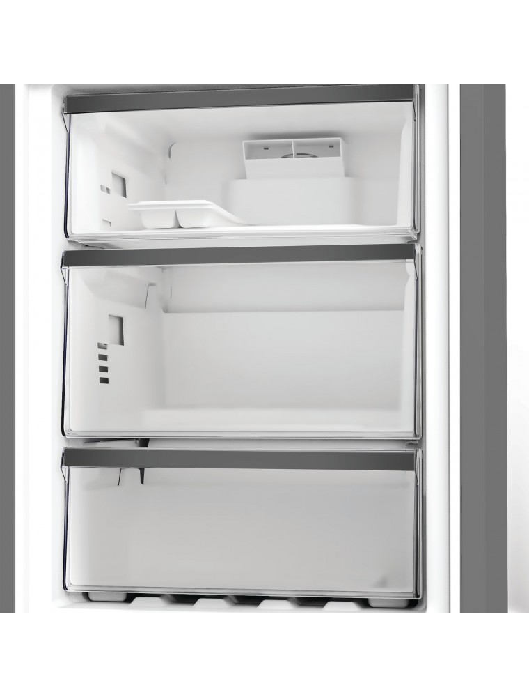 Графитовый 2-камерный холодильник бренда Whirlpool — это дебютант 2025 года выпуска и решение средней ценовой категории. Модель при высоте корпуса 186.5 см имеет полезный объем в 316 литров, чего, как правило, на практике хватает большинству семей, в том числе с несколькими детьми. К сильным сторонам агрегата стоит отнести инверторный компрессор Zen Inverter, который повышает общую надежность работы, снижает шумность (до 35 дБ) и показатели энергопотребления (за год до 248 кВт*ч, что соответствует классу A++).