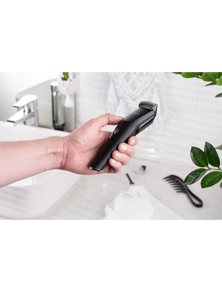 Удобный, функциональный и сравнительно недорогой инструмент для ухода за волосами, который может послужить отличным выбором как для домашних, так и для полупрофессиональных стрижек. Главной особенностью модели является универсальный гребень, который охватывает диапазон длины от 3 до 18 мм. Это позволяет легко адаптировать машинку для создания различных стилей и уровней длины волос.