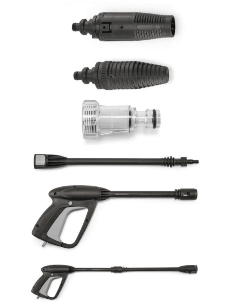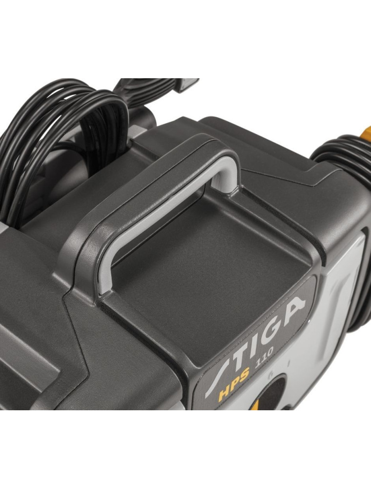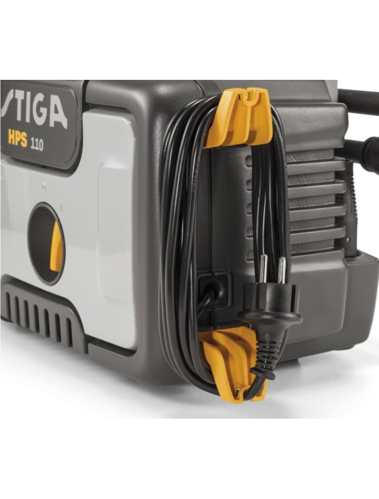 Давление водяной струи на выходе достигает «на полных парах» 110 бар. Насос изделия выполнен из алюминиевого сплава и способен безостановочно трудиться на протяжении до 1 часа. По истечении этого времени ему потребуется хотя бы краткосрочный «перекур». В нагрузку Stiga HPS 110 достался бачок под моющее средство, подача которого налажена автоматически (по запросу пользователя). Грамотно организованный кабельменеджмент позволяет сетевому проводу и шлангу 5-метровой длины не путаться под ногами. Удобств в обращении с устройством прибавляют транспортировочная ручка, рожки для намотки излишков сетевого шнура и зажимы под пистолет вкупе с запасной насадкой.