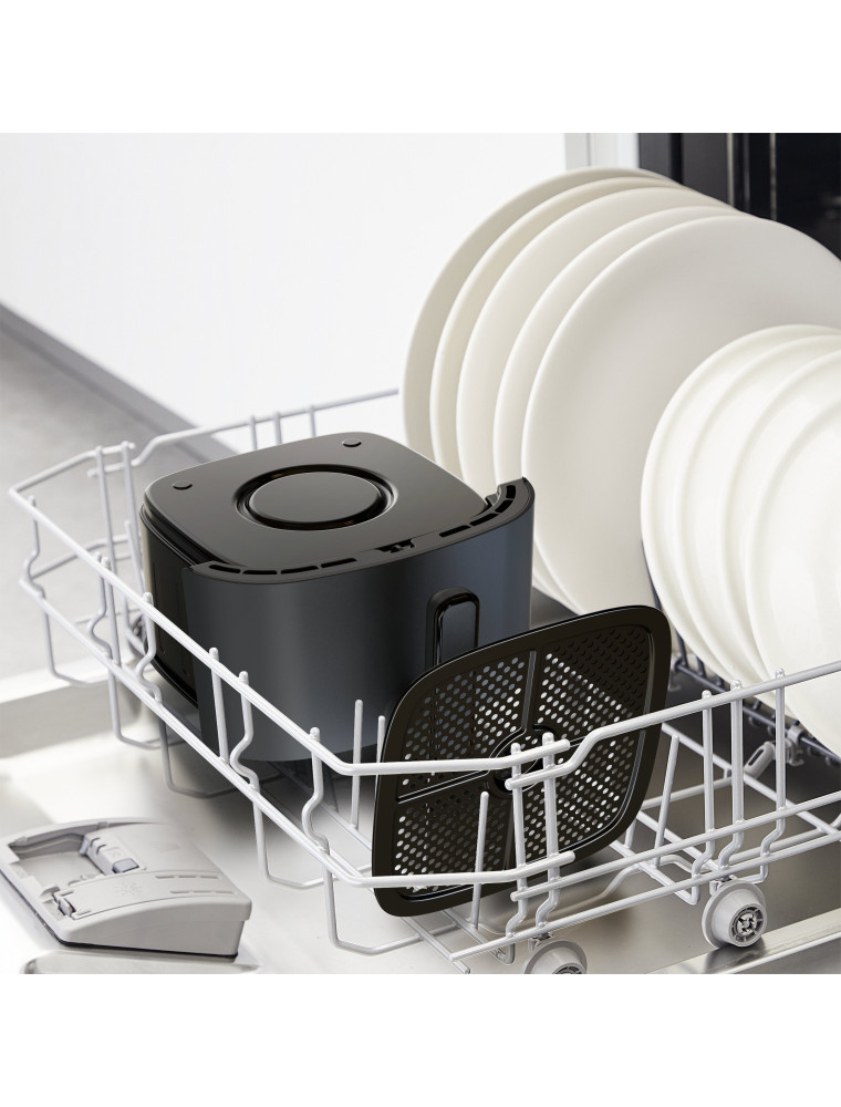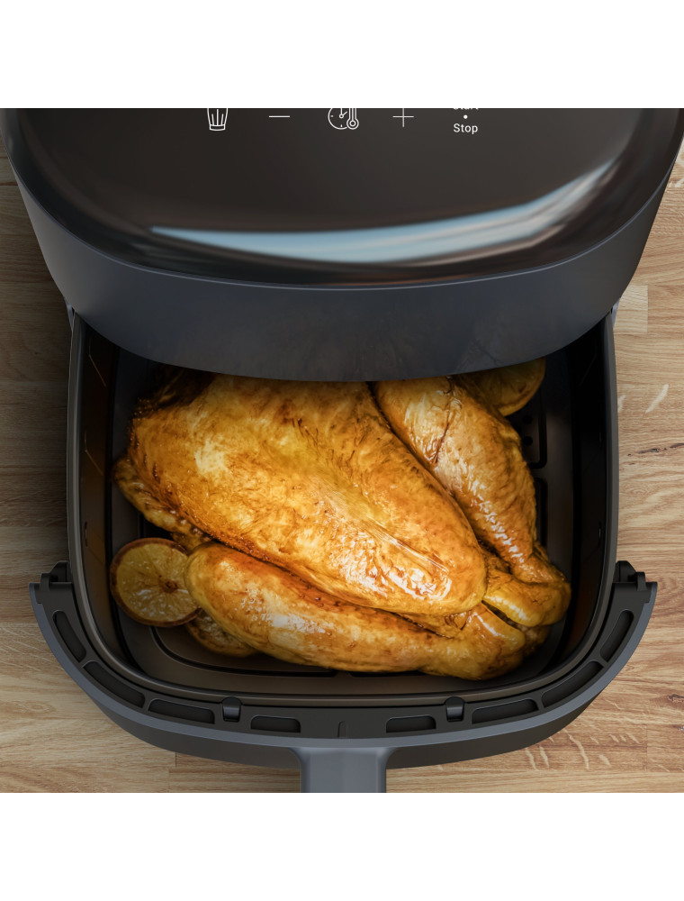 Мультипечь Tefal Easy Fry Max EY245B10 среднего ценового уровня от компании из Франции. Полезный объем модели составляет 5 литров, что обеспечивает полноценный рацион ежедневного питания для семьи из 4 человек. Нагреватель мощностью 1500 Вт ориентирован на стандартную скорость готовки при температуре 80 – 200 °C. В режиме мультишеф можно экспериментировать с настройками. Программы автоприготовления включают: картошку фри, курицу, пиццу, овощи, креветки, рыбу, стейк, медальон, бекон. Реализован режим выпечки хлебобулочных изделий и десертов. Пластиковый корпус закрытого типа не предусматривает смотровое окно. Чаша дополнена антипригарным покрытием, аксессуары совместимы с посудомоечной машиной. Навигация по меню осуществляется сенсорными кнопками.