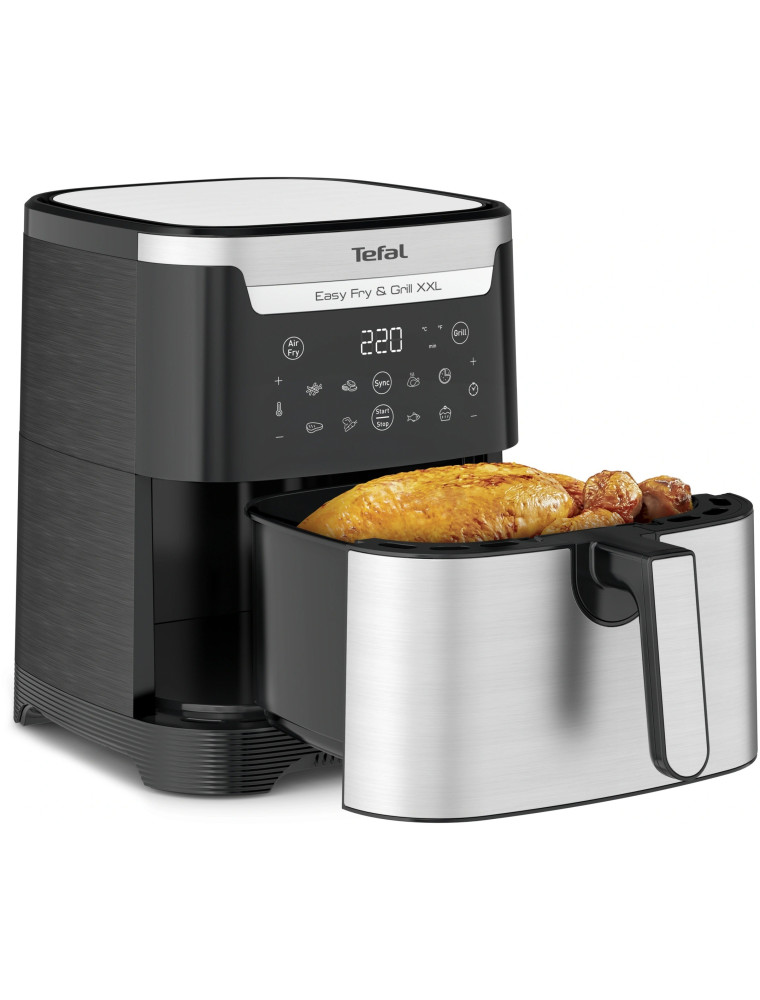 Однако все же это не две отдельные чаши, поэтому настройки будут одни. Чаша мультипечи имеет антипригарное покрытие, удобную ручку и полностью вынимается. Корзину и другие съемные аксессуары можно мыть в посудомоечной машине, что значительно облегчает обслуживание. Tefal Easy Fry&Grill XXL EY 801D предлагает на выбор 8 автоматических программ с предустановленными настройками: картофель фри, наггетсы, жареная курица, пицца, мясо, рыба, овощи и десерт (выпечка).