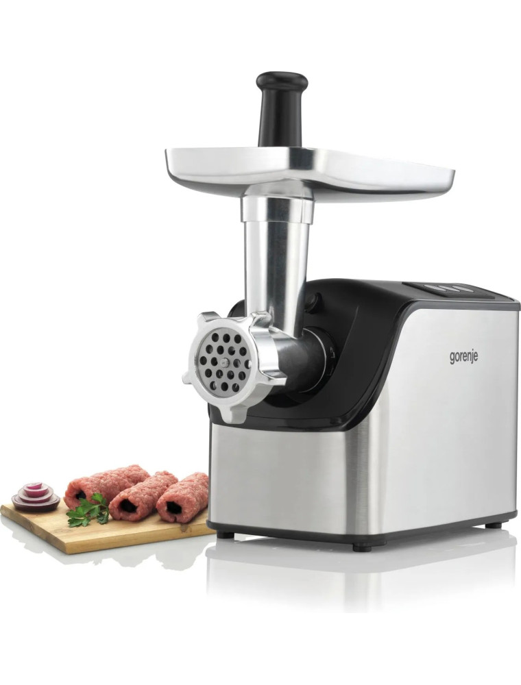 Электромясорубка от известного производителя бытовой техники Gorenje стоит недешево, но предлагает покупателю качественные материалы, высокую производительность и все необходимые функции для удобного использования. Корпус выполнен из пластика в сочетании с металлом. Прорезиненные ножки на дне обеспечивают устойчивость даже во время интенсивной работы. Дополнена модель вместительным загрузочным лотком из металла и пластиковым толкателем.