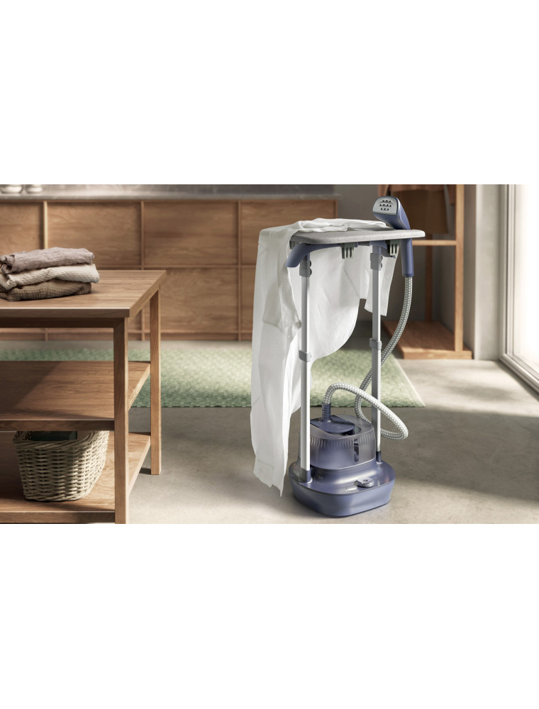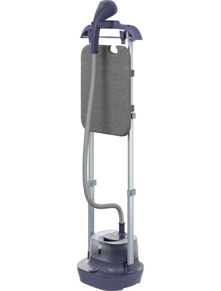 Производительный и эргономичный стационарный отпариватель с тремя режимами подачи пара, встроенной поворотной гладильной доской, телескопическими штангами, большим съемным баком для воды, а также защитой от накипи и перегрева. Позиционируется как продукт верхней части средней ценовой категории 2022 года. Ориентирован на активное бытовое и периодическое профессиональное применение.