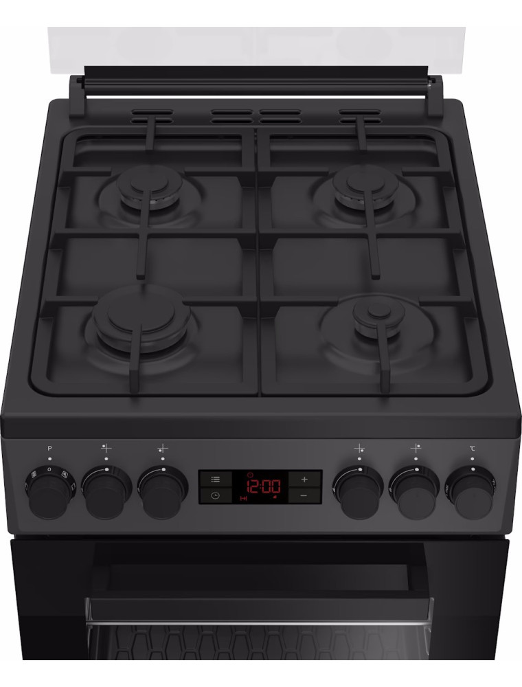 Для настройки температур (диапазон от 50 до 250 градусов Цельсия) и времени (таймера) предложены как поворотные переключатели, так и информативный дисплей. Упростить уход после эксплуатации духовки призвана паровая очистка SteamShine. Газовая составляющая дополнена привычные опциями — автоподжигом и системой газ-контроля для защиты от утечек. Отдельно стоит выделить галогеновую подсветку рабочей камеры, стеклянную крышку варочной поверхности и нижний ящик для хранения крупной посуды и кухонных принадлежностей (сковородок, противней и т.д.).