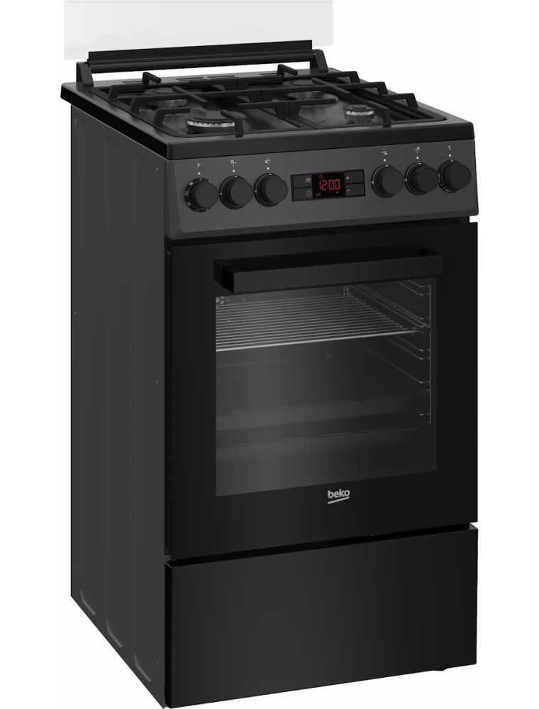 Черная комбинированная плита торговой марки Beko — это кухонный прибор средней ценовой категории с шириной корпуса 50 см (при традиционных размерах в высоту и глубину — соответственно 85 и 60 см). Модель можно рекомендовать для относительно небольших кухонь, где необходимо рационально использовать каждый сантиметр пространства. Варочная панель предусматривает эмалированную рабочую поверхность с четверкой газовых горелок разной мощности (эквивалент от 1000 до 2900 Вт).