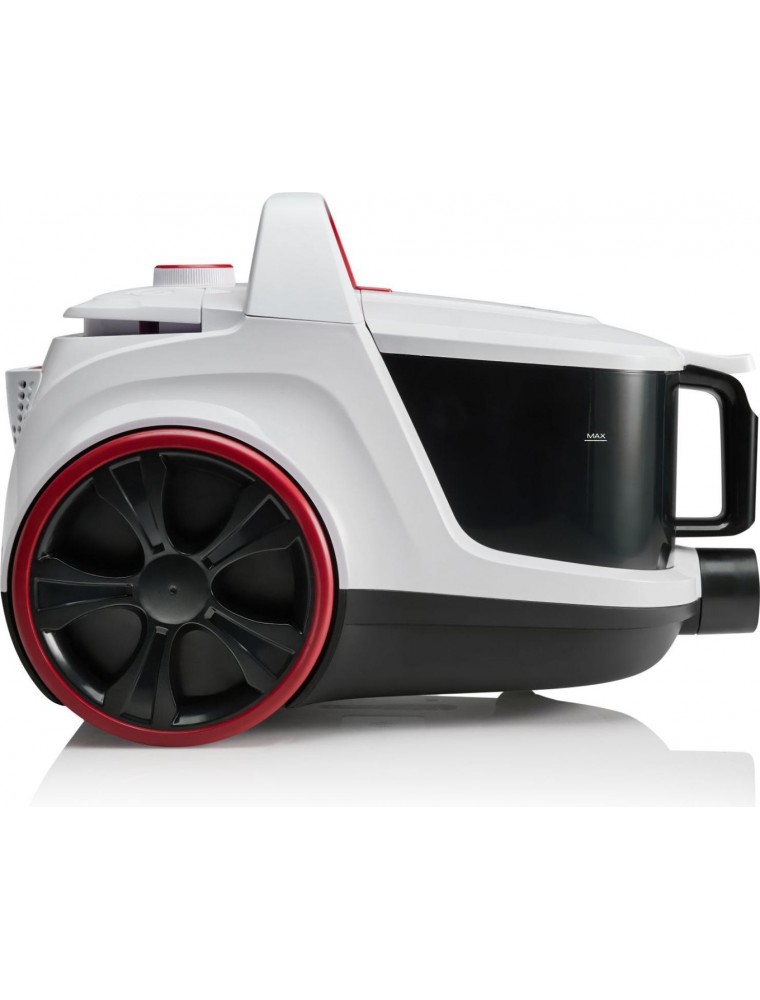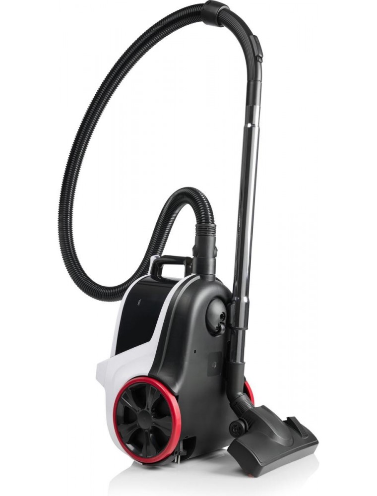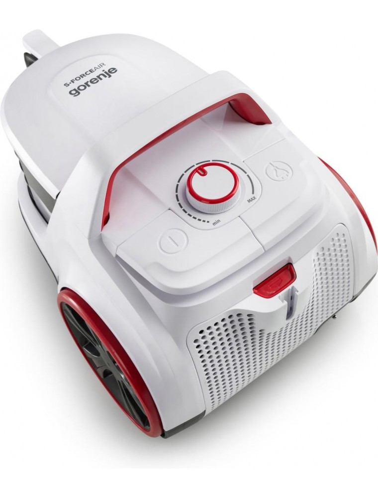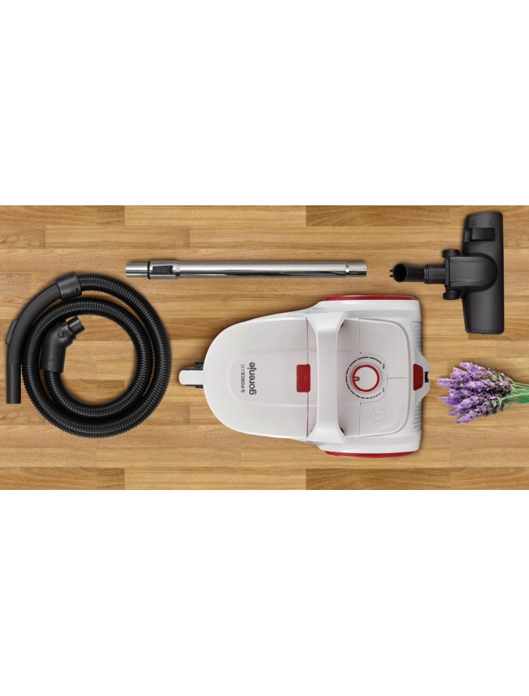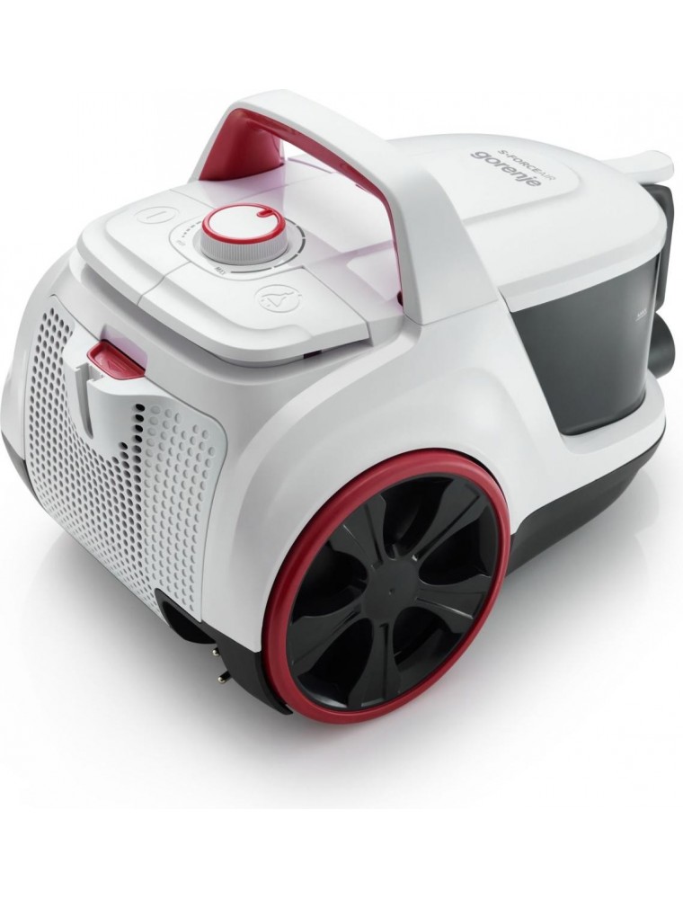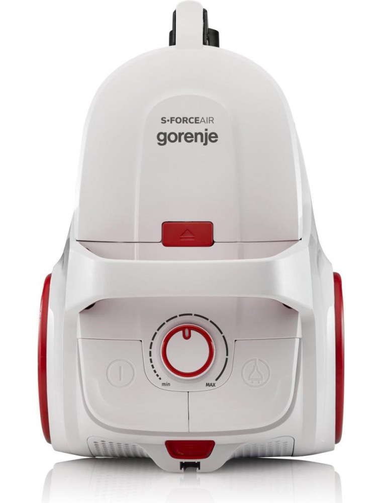 Модель компании Gorenje представляет собой классический бытовой пылесос для сухой уборки с невысоким ценником. Пластиковый корпус окрашен в белый цвет с красными вставками, крупные колеса повышают маневренность и проходимость устройства. Обладая мощностью всасывания в 190 Вт, пылесос тщательно собирает сухой мусор, мелкую пыль, волосы и шерсть домашних животных, причем как на гладких напольных покрытиях, так и на ворсистых коврах.