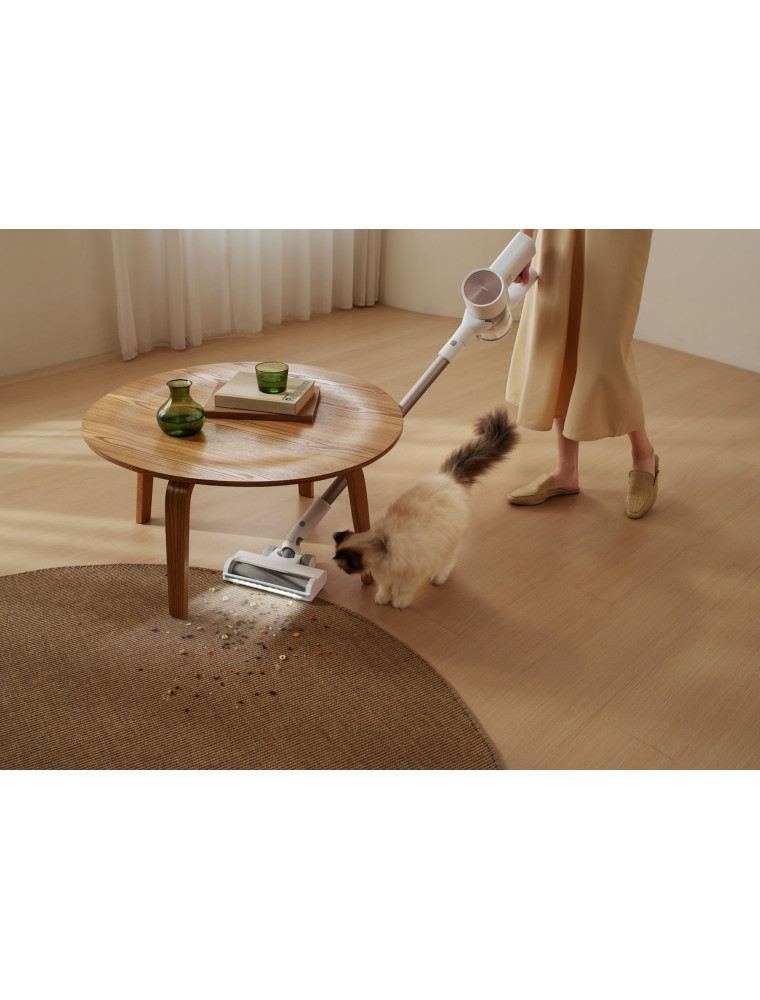 Беспроводной пылесос компании Xiaomi предназначен только для сухой уборки и представляет собой модель 2-в-1: благодаря наличию портативного блока, который снимается с корпуса, устройство можно использовать как классический вертикальный пылесос или компактный ручной. Это значительно расширяет радиус уборки — от дома до уличной террасы, рабочего кабинета и салона автомобиля. Мощный бесщеточный двигатель обеспечивает высокую силу всасывания в 25000 Па, позволяя эффективно очищать от мусора как гладкие напольные покрытия, так и ковры.