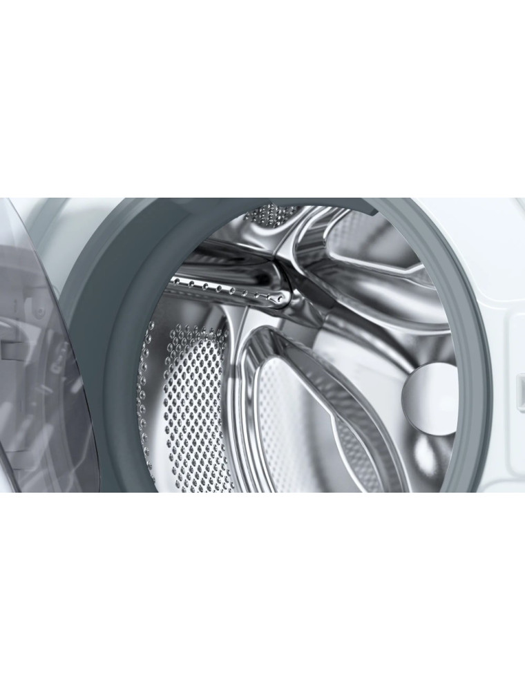 Фронтальная стиральная машина компании Bosch в 2022 году пополнила фирменную линейку Serie 4, которая объединяет решения стандарт-класса. Прибор при глубине корпуса в 60 см способен за раз очистить от загрязнений до 8 кг хлопковых вещей. А для их последующего избавления от влаги предлагается достаточно эффективный отжим (класс B) на скорости до 1400 оборотов за минуту. К достоинствам модели относится инверторный двигатель EcoSilence Drive, который повышает надежность, снижает уровень шума (до 74 дБ) и энергопотребление (класс C по новой маркировке, что даже лучше, чем A+++ по старой классификации).