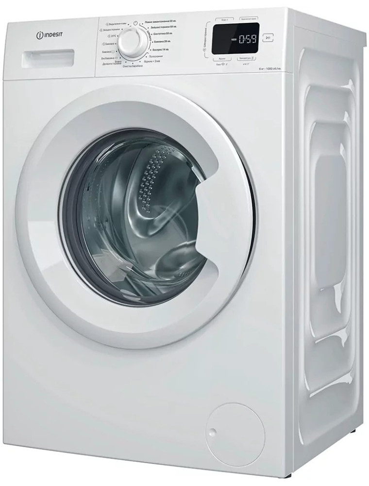 Стиральная машина компании Indesit предлагает оптимальное соотношение стоимости и функциональности и особенно подходит тем пользователям, которые не хотят тратить много времени на стирку. Модель с фронтальной загрузкой позволяет за раз загружать до 6 кг белья, но при этом занимает не слишком много места — ее габариты составляют 84.5х60х44.6 см. То есть достаточно узкий корпус облегчает размещение в ограниченном пространстве без значительного выступа.
