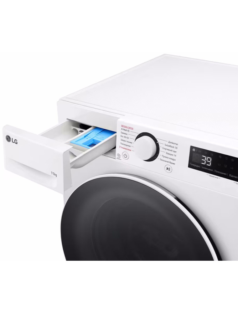 TurboWash 360º позволяет тщательно и качественно постирать полную загрузку всего за 39 минут благодаря усовершенствованной системе распыления воды, которая интенсивно орошает белье со всех сторон барабана, обеспечивая полноценную стирку и полоскание в три раза быстрее стандартного цикла. Функция обработки паром Steam использует пар для уничтожения до 99.9% аллергенов, включая пылевых клещей, пыльцу растений и другие раздражители. Функция Smart Diagnosis дает возможность быстро диагностировать неисправности через смартфон с установленным приложением LG ThinQ, передавая информацию о проблемах непосредственно в сервисный центр для оперативного решения.