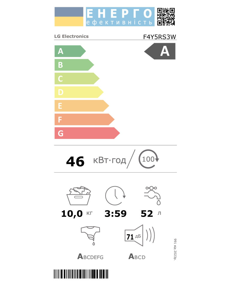 | Дополнительные программы | быстрая стирка; деликатная стирка; гигиена (детская одежда); спортивная одежда; пуховые вещи |