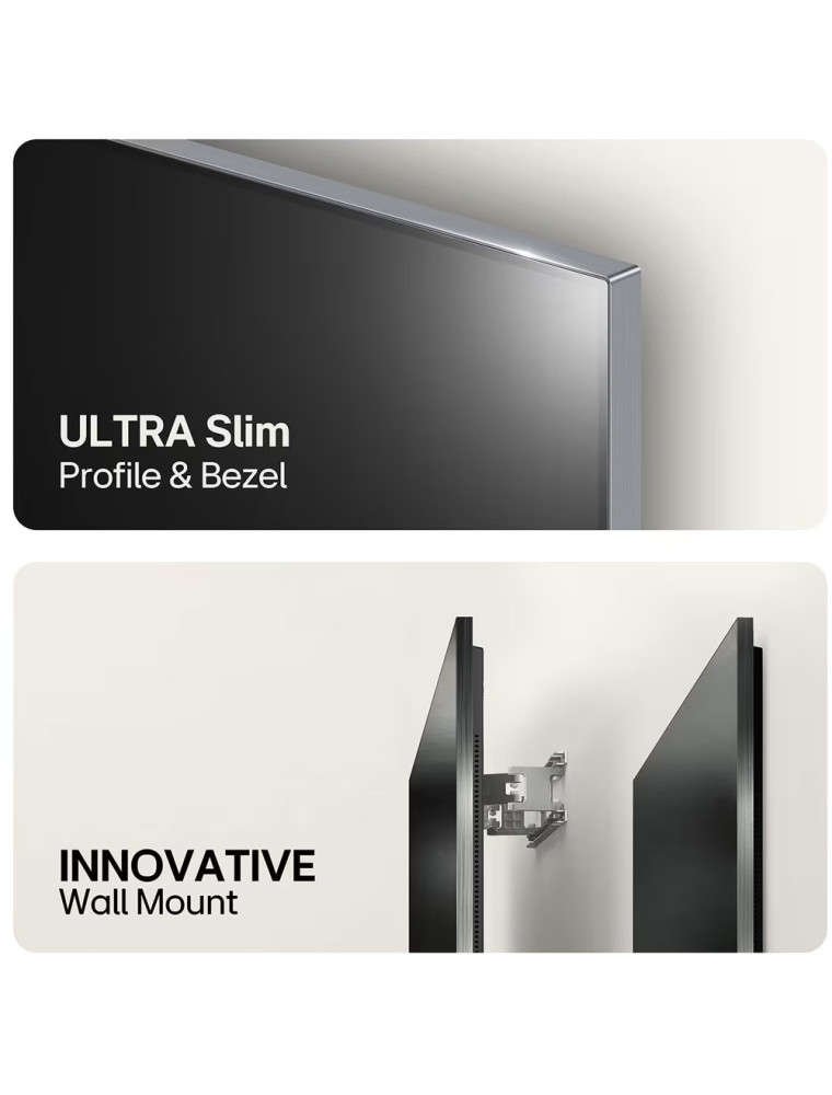 Встроенный датчик освещения. WOW Orchestra — синхронизация звука телевизора с саундбаром. Настраиваемые цветовые фильтры изображения на основе ИИ. Адаптация звука под помещение с помощью ИИ, объемный звук.