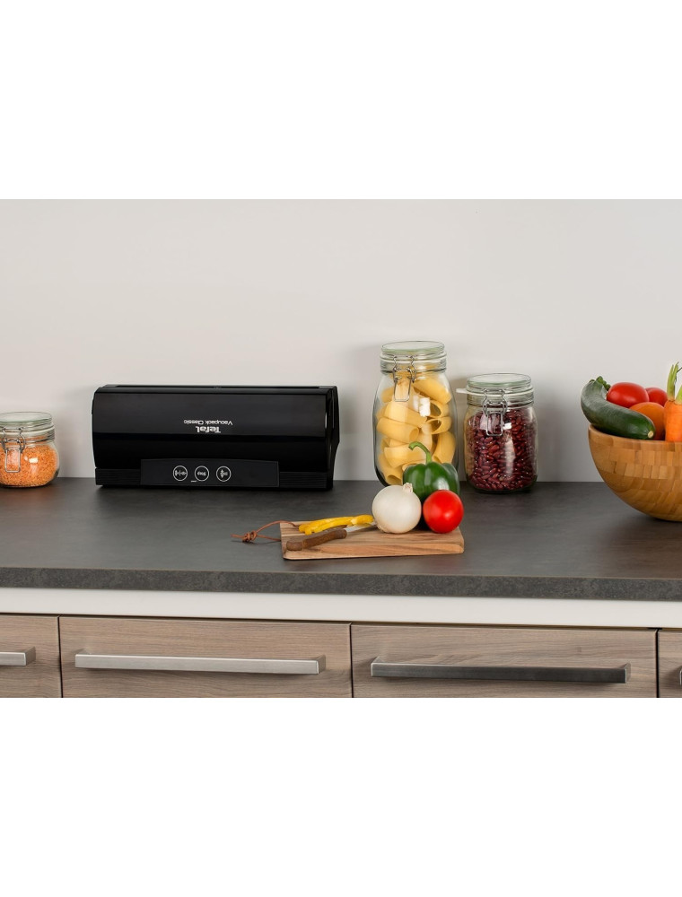 Дебютант модельного ряда бренда Tefal 2024 года — это настольный вакуумный упаковщик, который можно отнести к среднебюджетной категории. Заявлено, что прибор способен продлить период сохранения свежести продуктов в 8 раз. Само устройство отличается умеренными габаритами (74x370x150 мм), имеет отсек для размещения сетевого шнура, так что не займет много места и при эксплуатации, и при хранении.