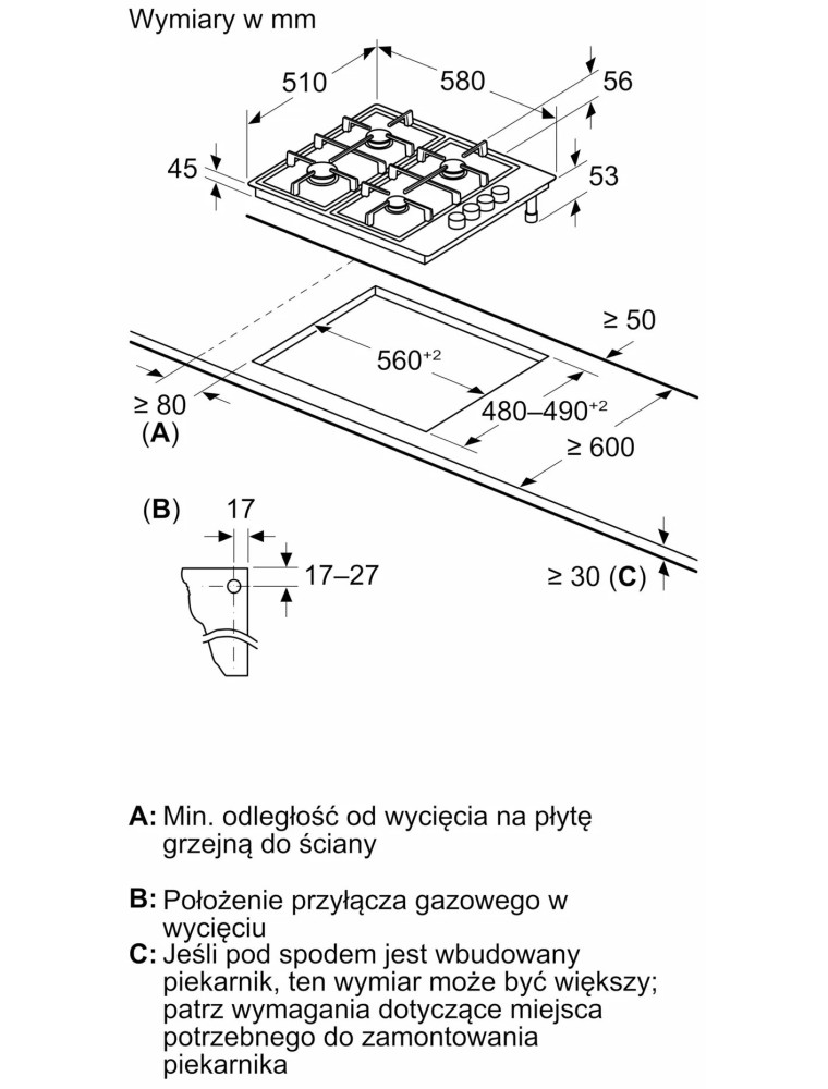 | Размеры для встраивания (ШхГ) | 560x480 мм |