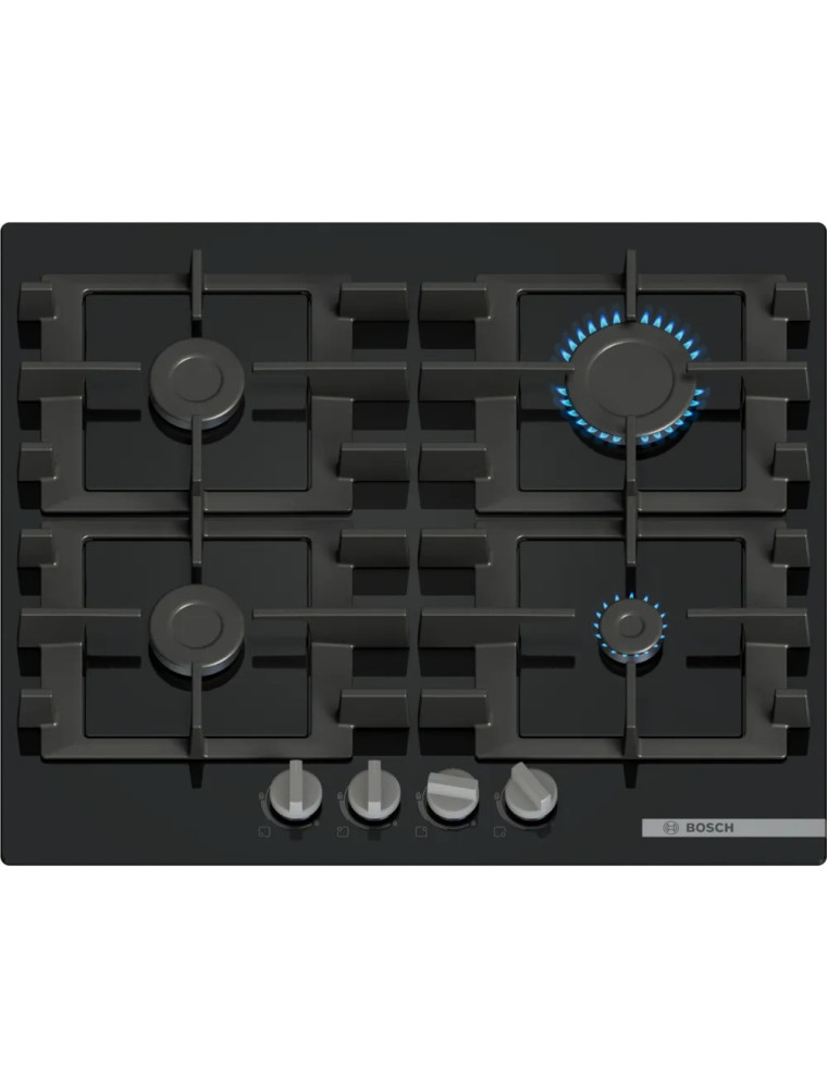 Дебютант 2025 года в линейке Serie 4 бренда Bosch — это газовая варочная панель, которую можно отнести к приборам на стыке средней и продвинутой ценовой категории. Модель относится к решениям «газ на стекле», ведь в качестве рабочей поверхности используется закаленное стекло. Оно эффектно выглядит, предполагает достаточно простой уход, имеет неплохой запас прочности (хотя, понятное дело, уступает в этом аспекте металлу).