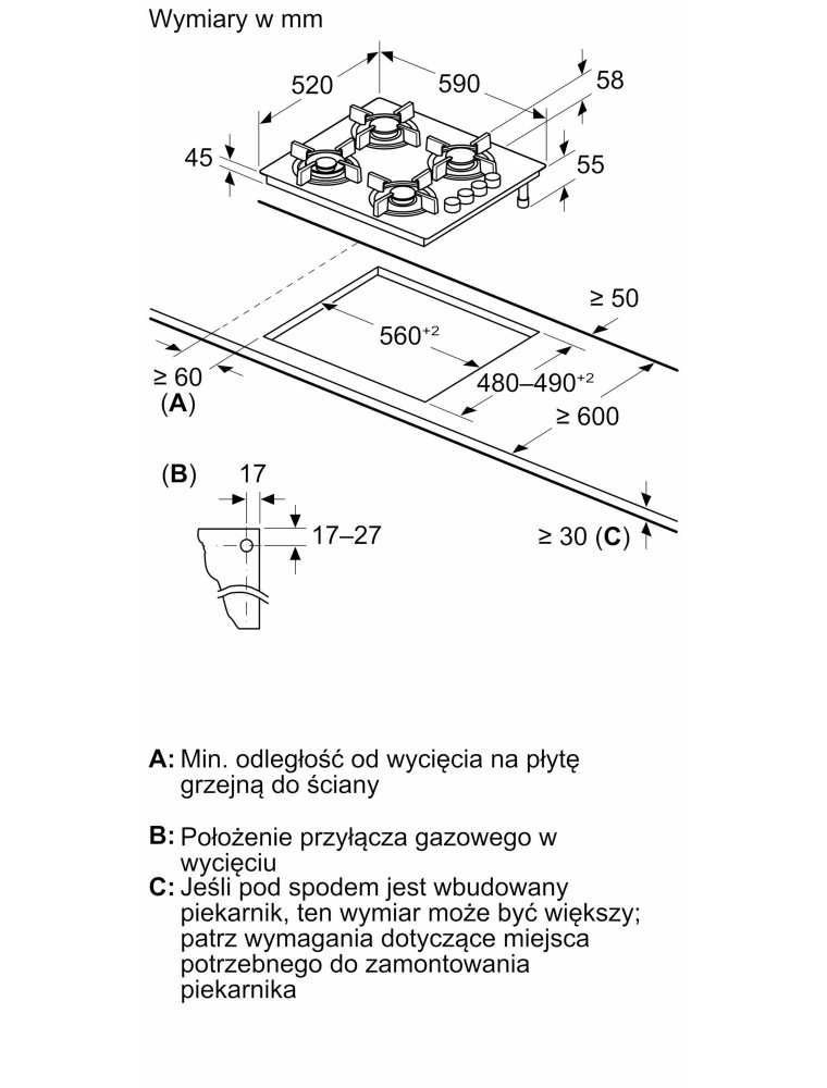 | Размеры для встраивания (ШхГ) | 560x480 мм |