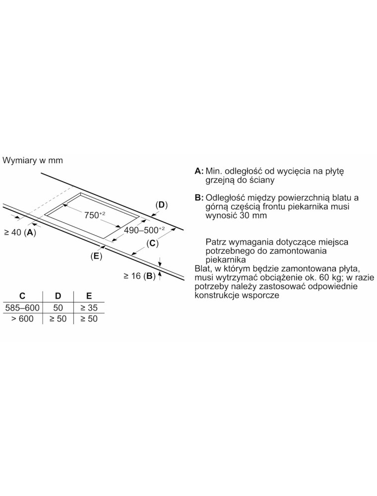 | Размеры для встраивания (ШхГ) | 750x490 мм |
