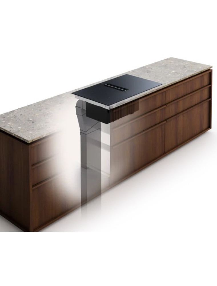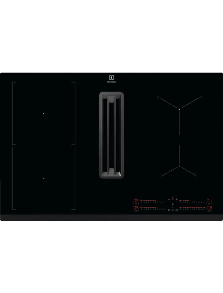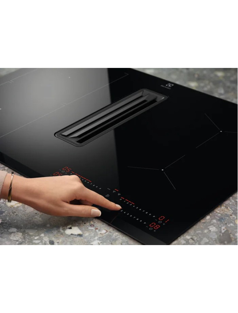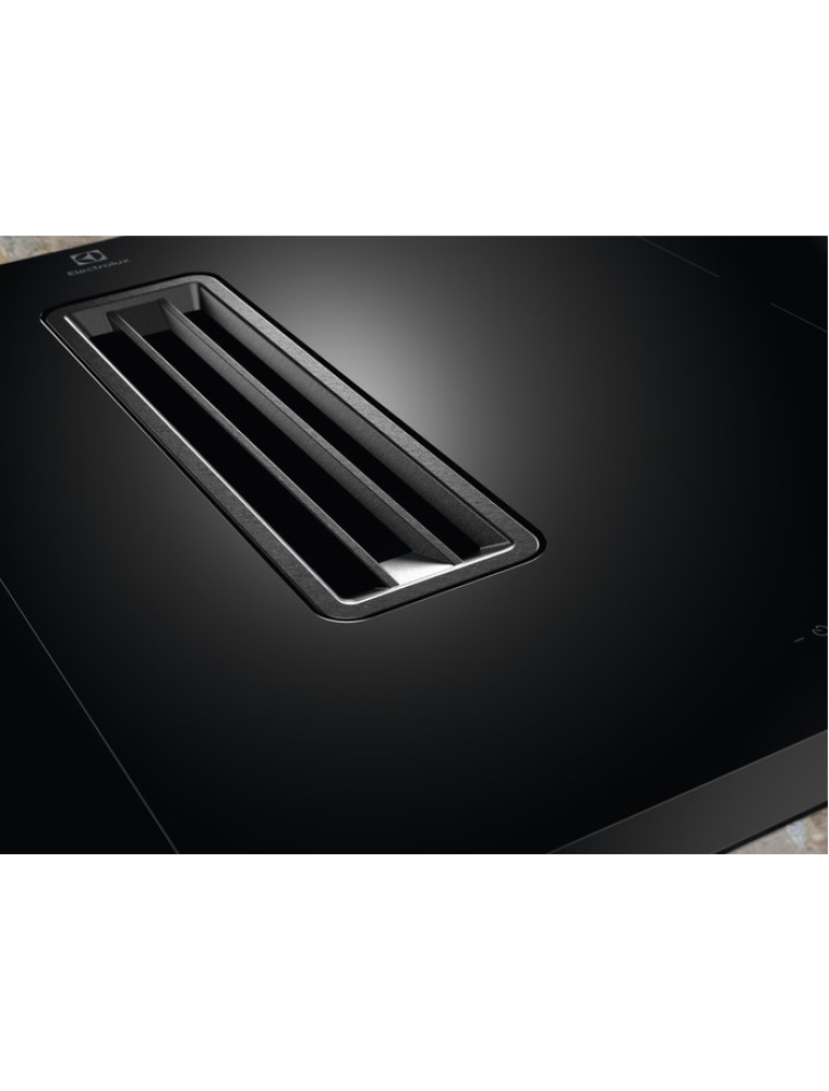 Наличие собственной встроенной вытяжки в конструкции варочной поверхности. Как правило, воздухозаборник при этом располагается на уровне конфорок, его размер невелик, а производительность невысока. Соответственно, встроенная вытяжка навряд ли подойдёт на роль основной системы вентиляции в кухне, но в то же время она может оказаться неплохим дополнением к отдельно установленной вытяжке. Основными недостатками варочных панелей с такой функцией являются высокая стоимость и сложность в установке.