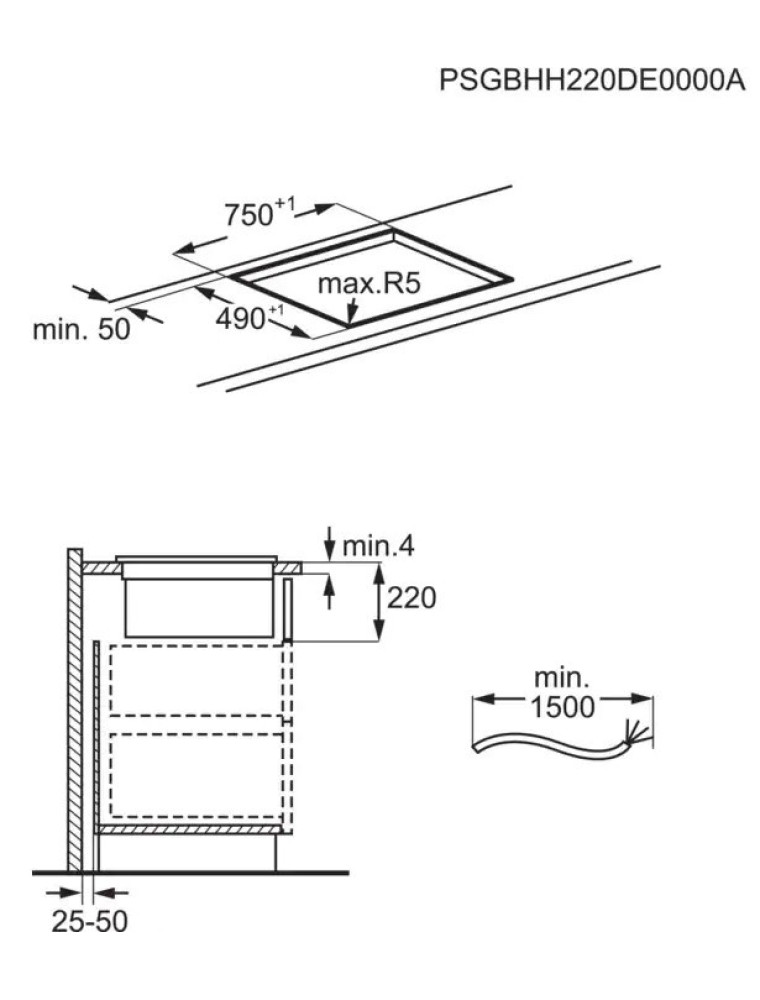 | Размеры для встраивания (ШхГ) | 750x490 мм |