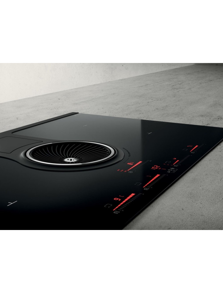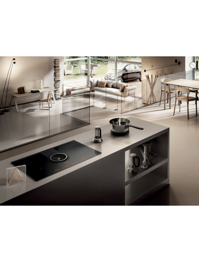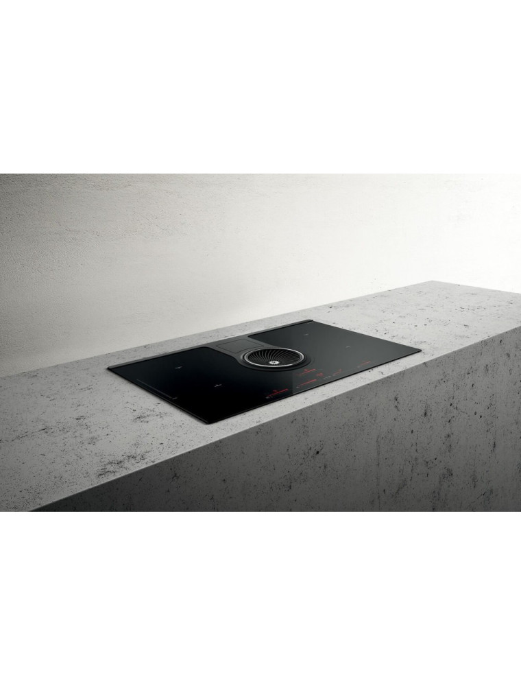 Наличие собственной встроенной вытяжки в конструкции варочной поверхности. Как правило, воздухозаборник при этом располагается на уровне конфорок, его размер невелик, а производительность невысока. Соответственно, встроенная вытяжка навряд ли подойдёт на роль основной системы вентиляции в кухне, но в то же время она может оказаться неплохим дополнением к отдельно установленной вытяжке. Основными недостатками варочных панелей с такой функцией являются высокая стоимость и сложность в установке.