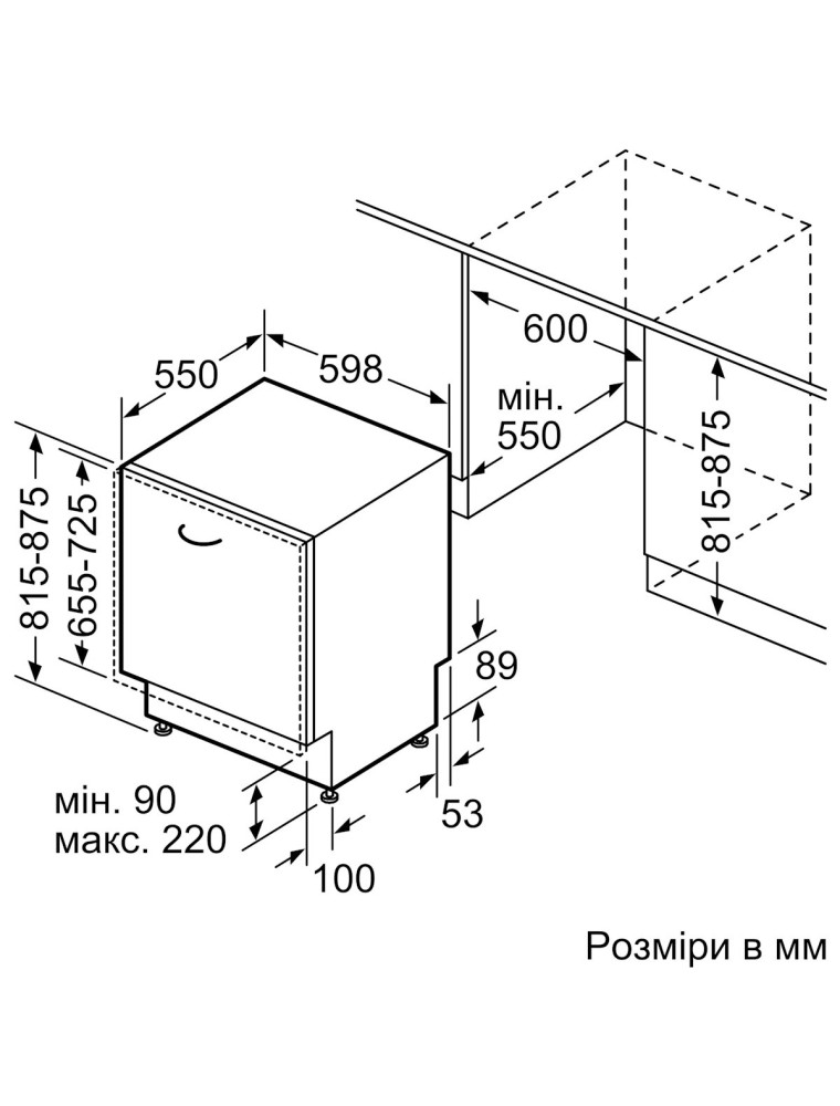 | Глубина для встраивания | 550 мм |