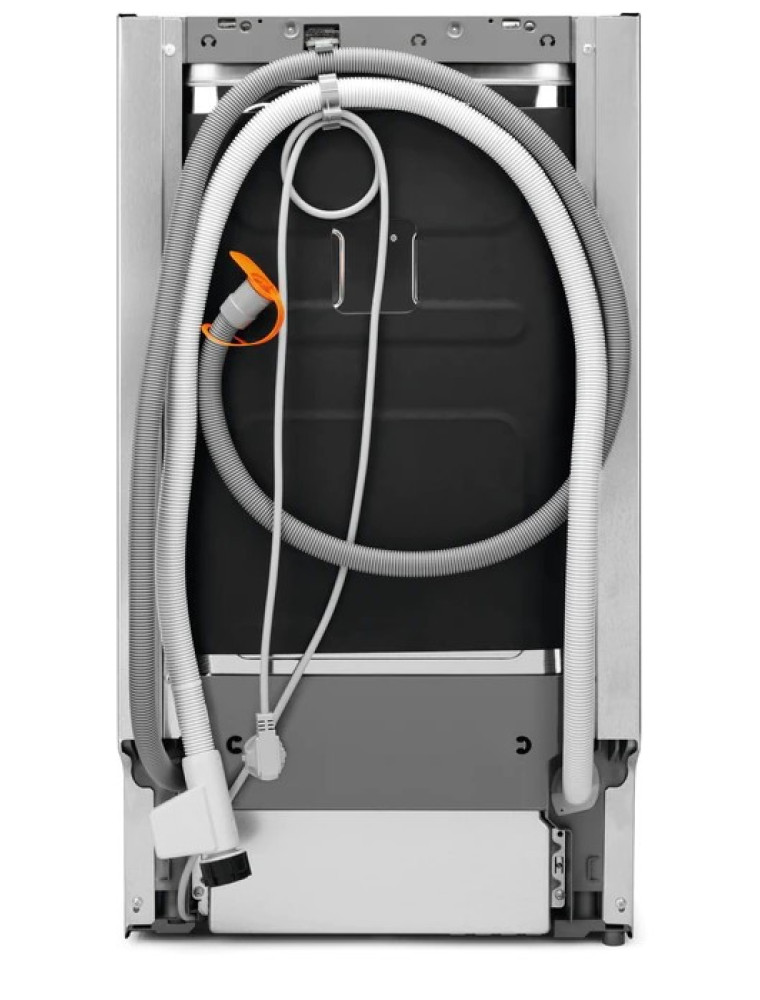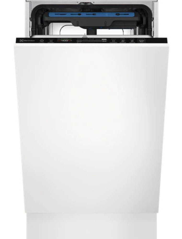 Узкая (ширина для встройки 45 см) посудомойка торговой марки Electrolux — это среднебюджетный прибор с удобными органами управления. Модель оснащена сенсорной панелью QuickSelect с дополнительным информативным дисплеем. Они вполне привычно находятся на торце дверцы, но на фоне аналогов выделяются присутствием фирменного слайдера: он призван упростить процедуру взаимодействия с агрегатом.