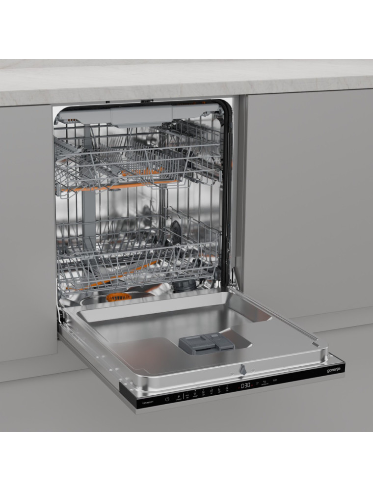 Дебютант 2025 года от бренда Gorenje — это встраиваемая среднебюджетная посудомойка большой вместительности. Модель при стандартной глубине корпуса в 60 см готова за раз очистить от жира и прочих загрязнений до 16 комплектов посуды, что порадует большие семьи и тех, кто часто организует домашние застолья с гостями. Для повышения полезного объема реализована компоновка с третьим уровнем загрузки для столовых приборов.