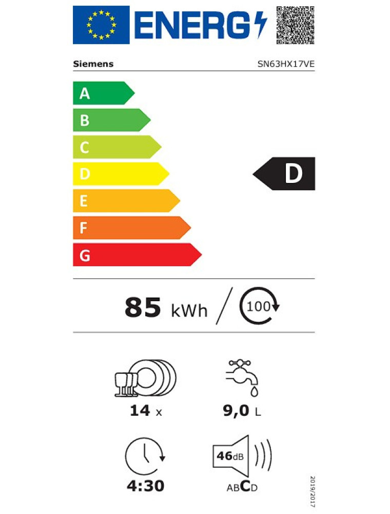 Характеристики Встраиваемая посудомоечная машина Siemens SN63HX17VE