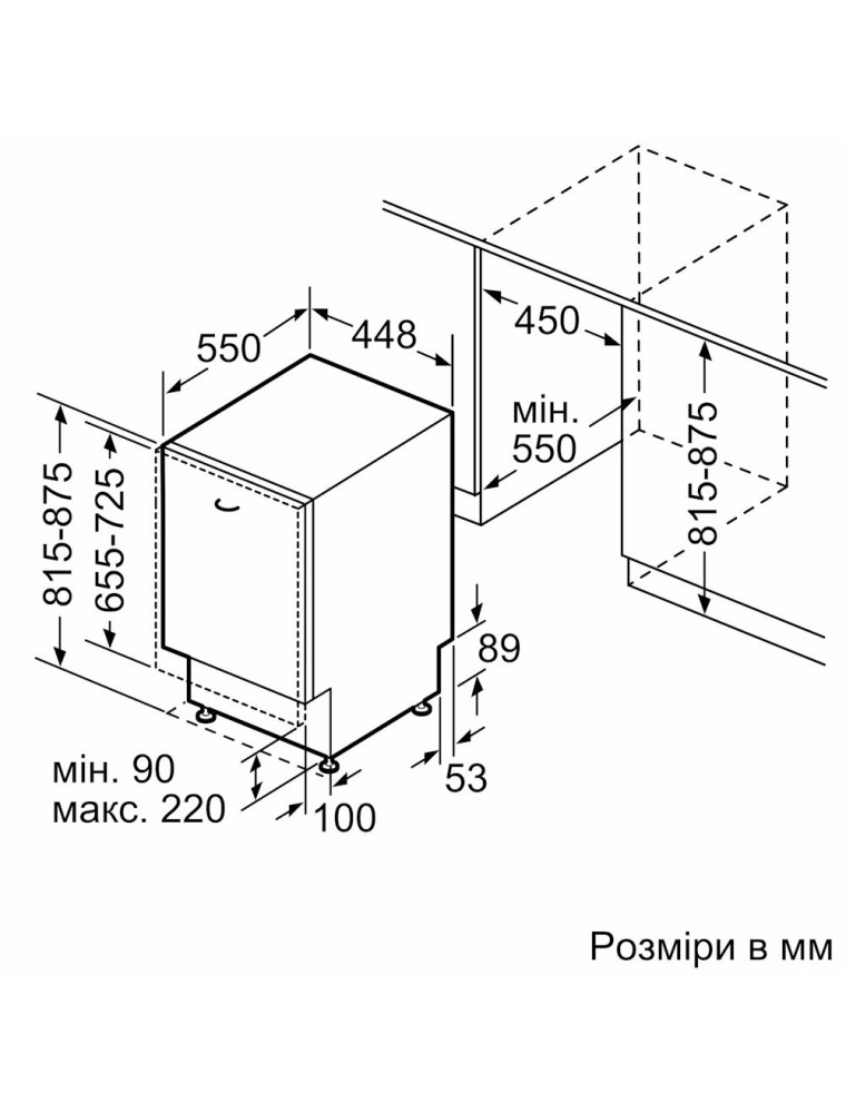 | Глубина для встраивания | 550 мм |